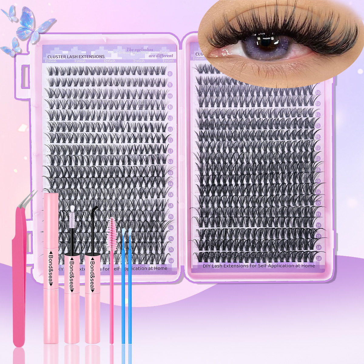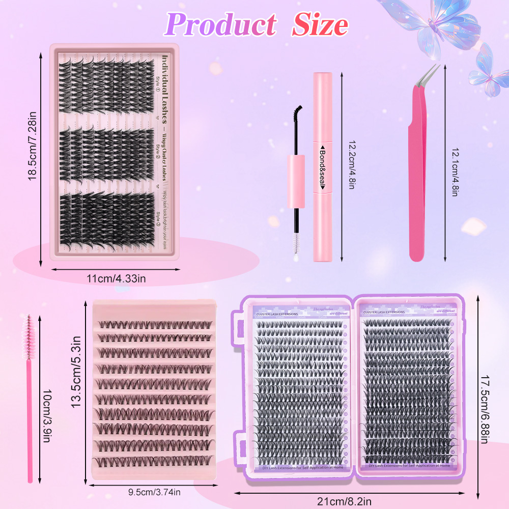 Conjunto de Extensão de Cílios DIY Tufinho Único, 9-18mm Mix 30D 40D 50D 80D com Cola e Pinça para Iniciantes, Conjunto