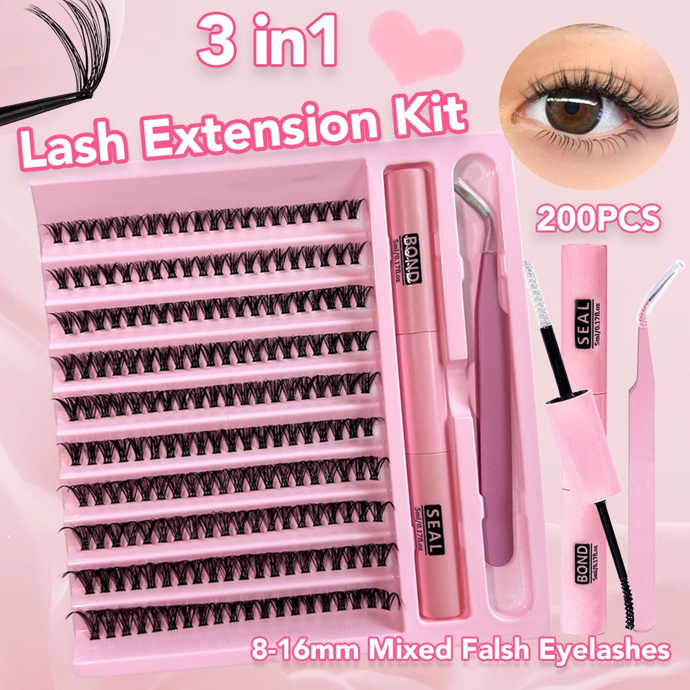 Conjunto de Extensão de Cílios com 200 Peças - Cílios Postiços 20D/30D/40D/50D, Comprimentos Mistos de 8-16mm, Estilos