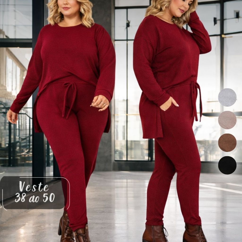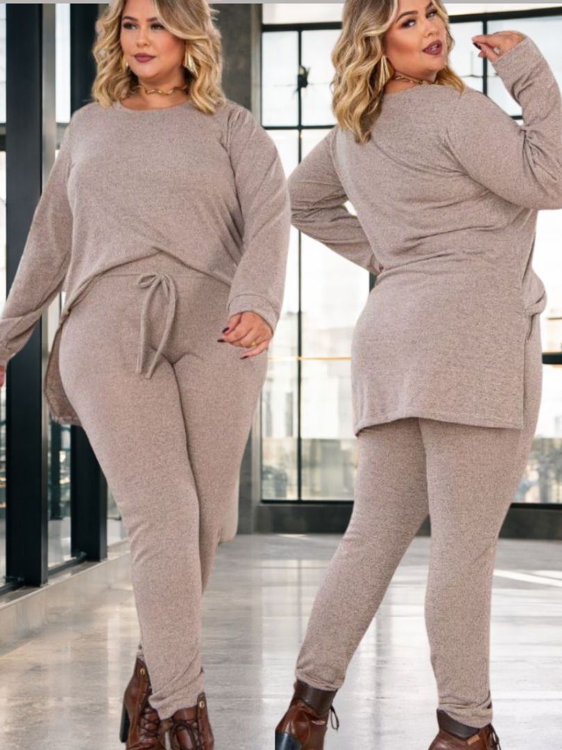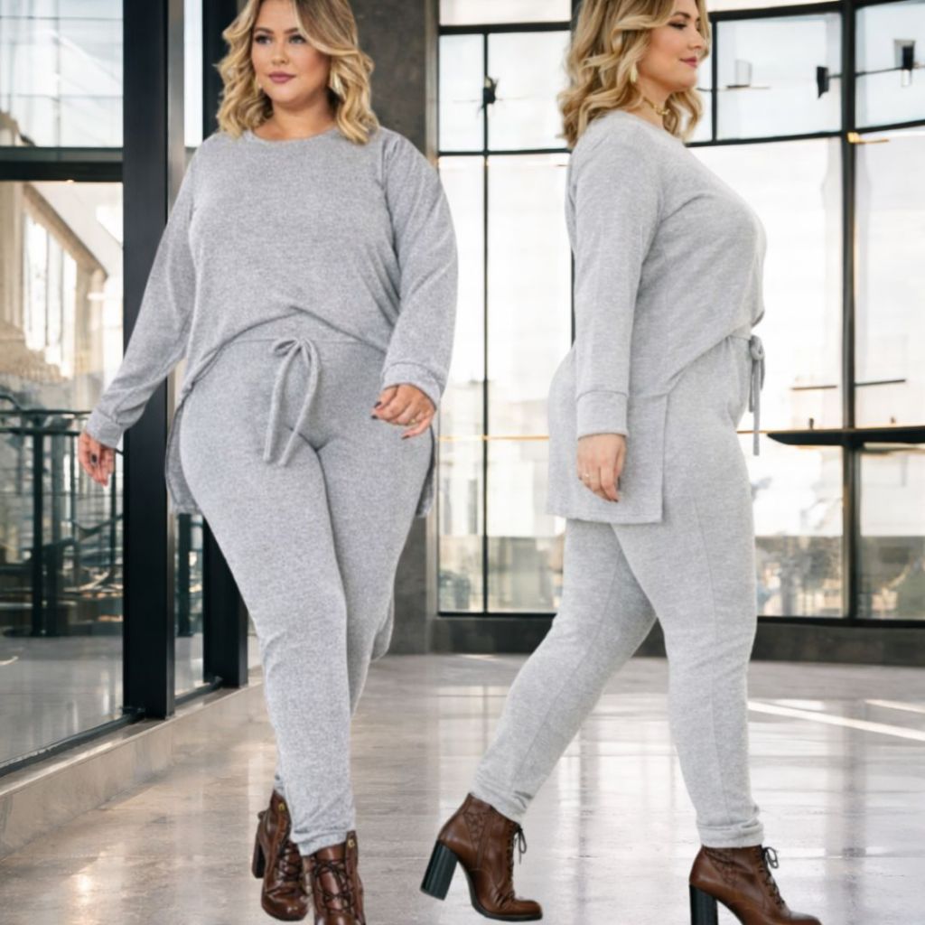 Conjunto de Frio Feminino Malha Lanzinha plus size curve Estilo Moletom Look Inverno