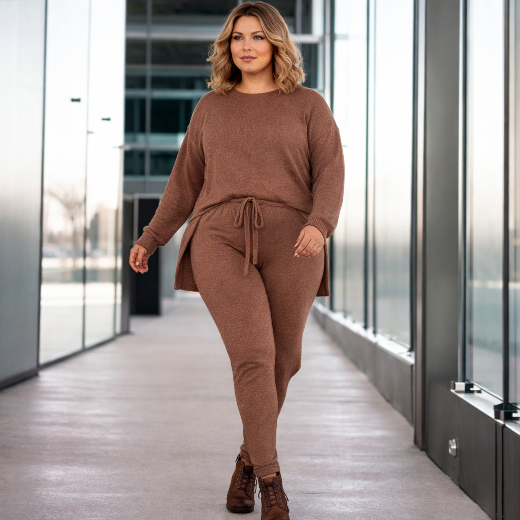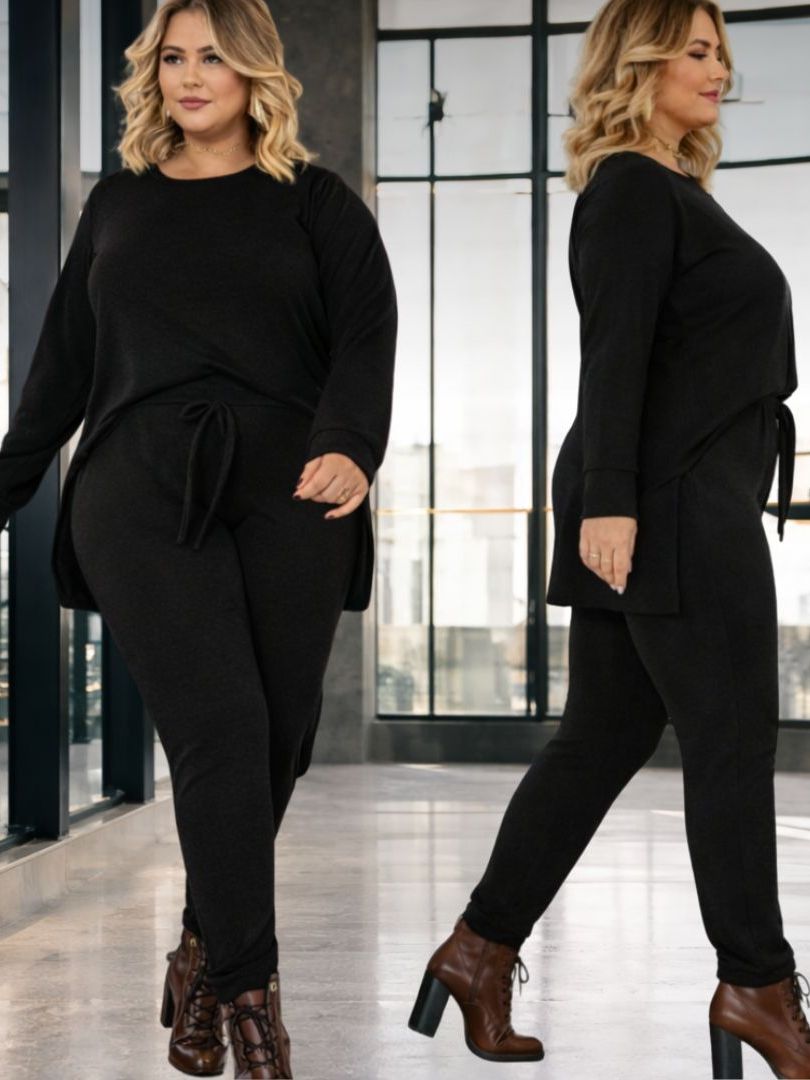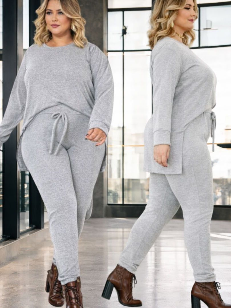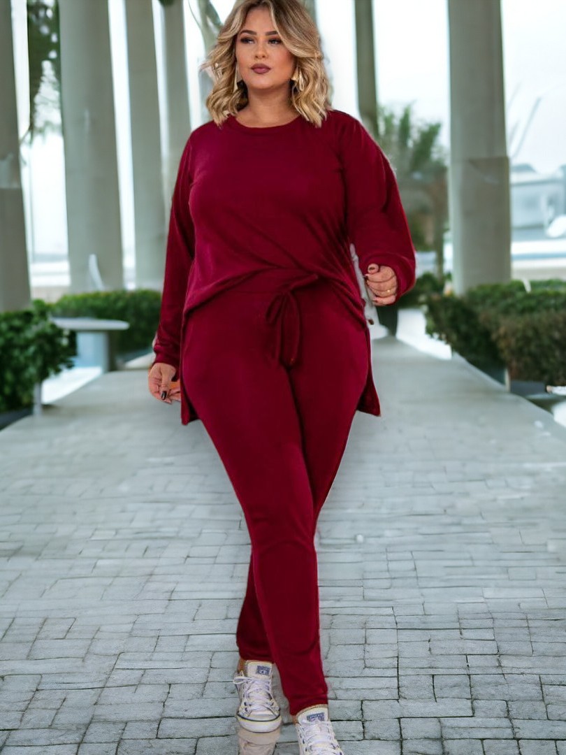Conjunto de Frio Feminino Malha Lanzinha plus size curve Estilo Moletom Look Inverno