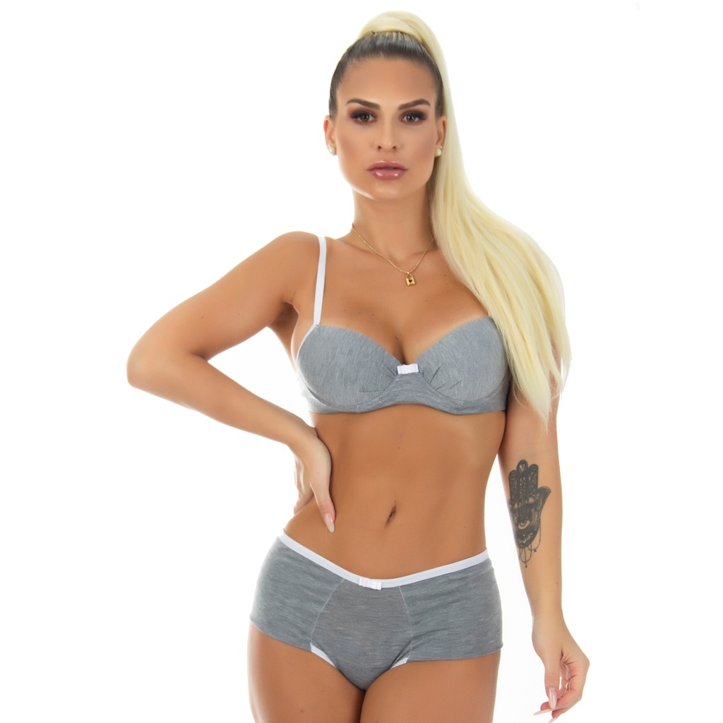 Conjunto de Lingerie Algodão com Calcinha Caleçon