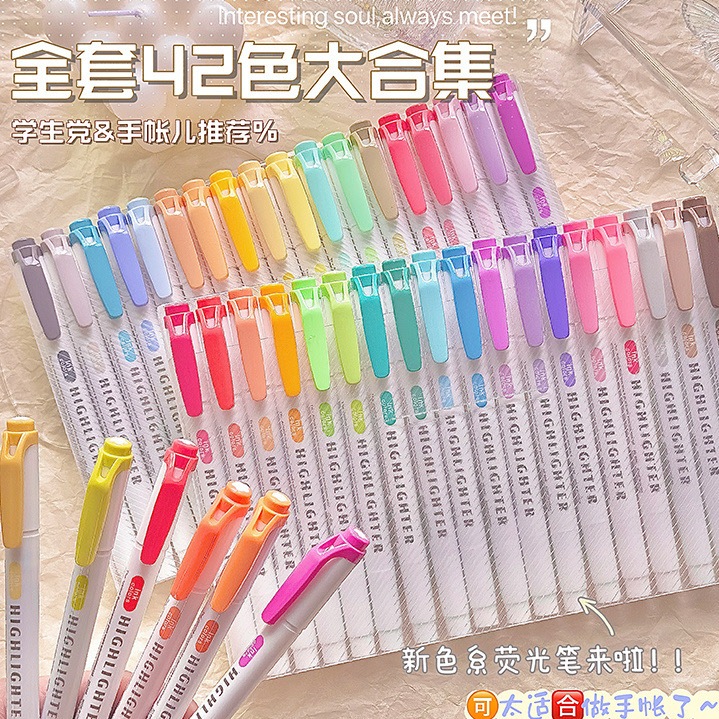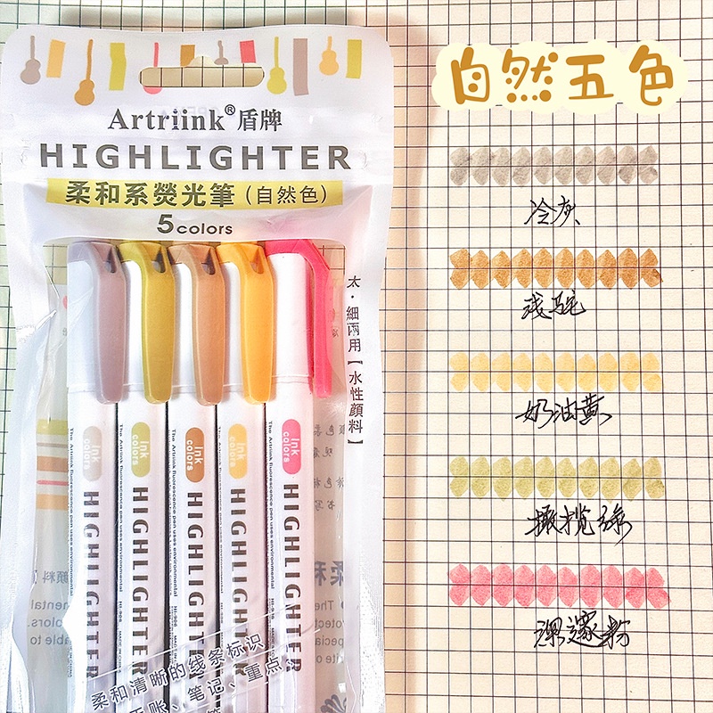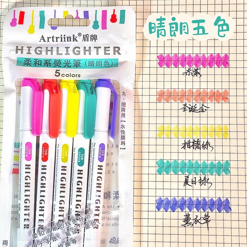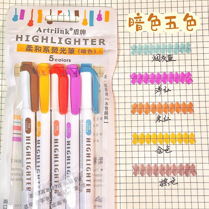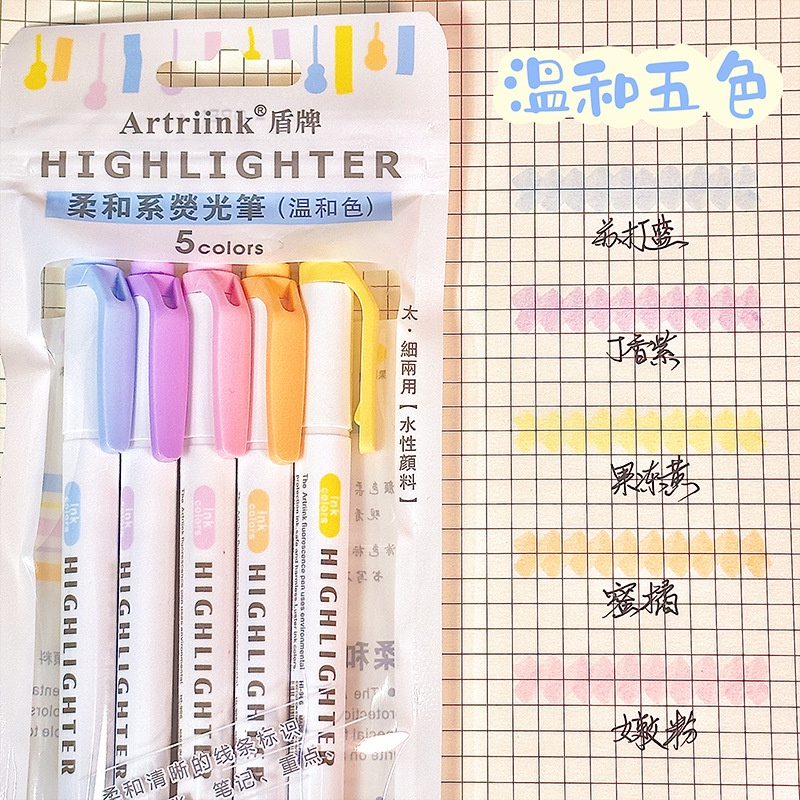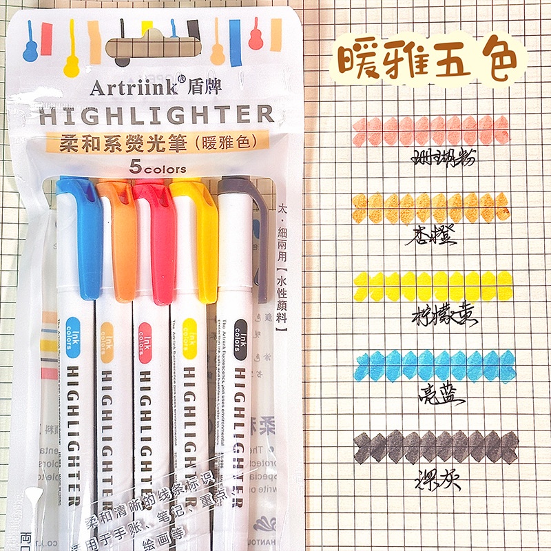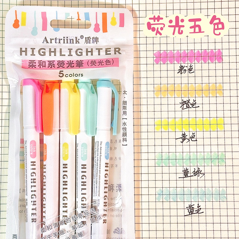 Conjunto de Marcador Dupla Ponta Proteção Olhos Escrita Lisa Caneta Multicolor Papelaria Criativa 5 Pcs/Set