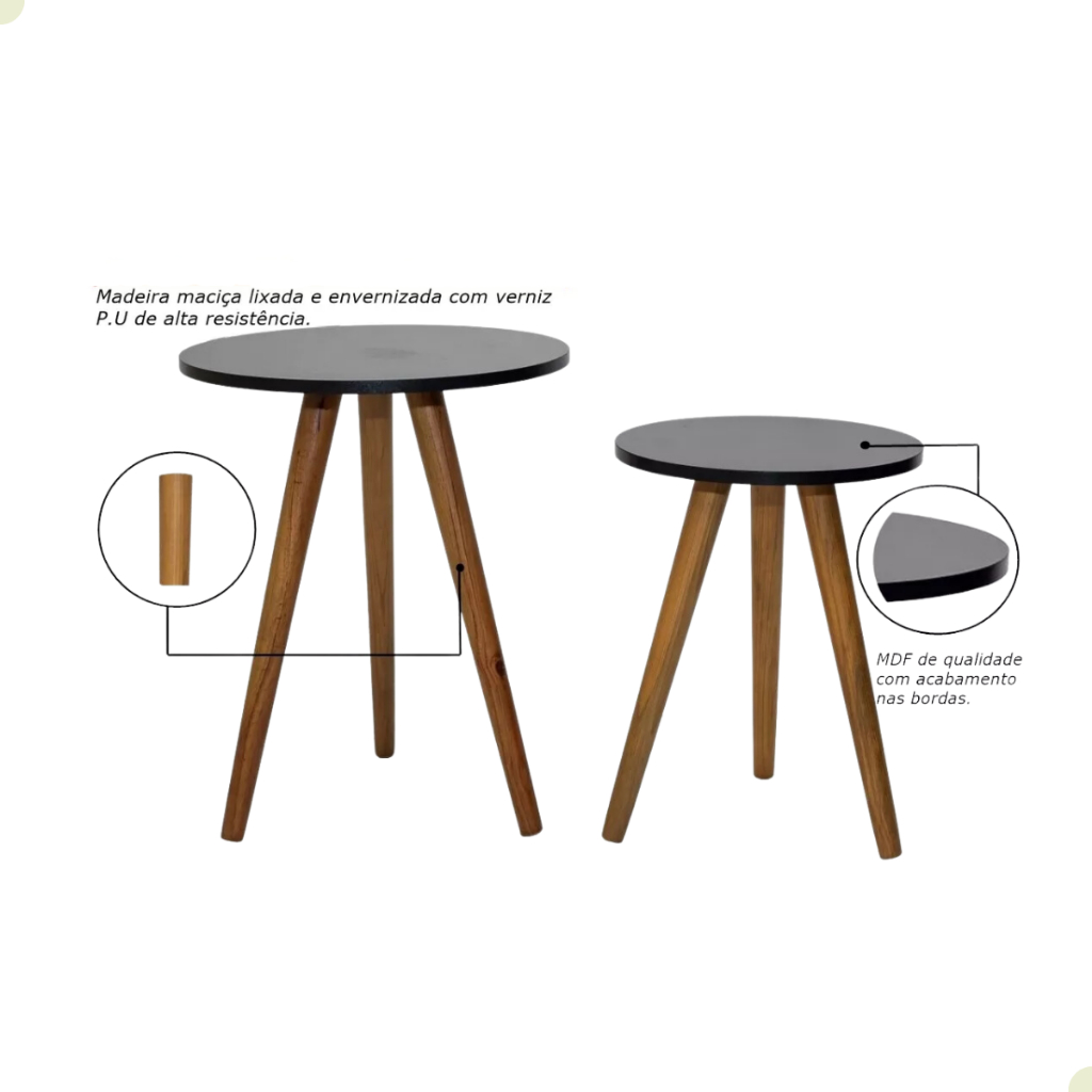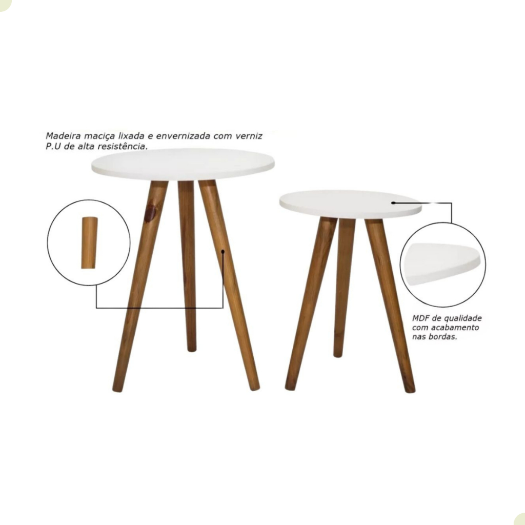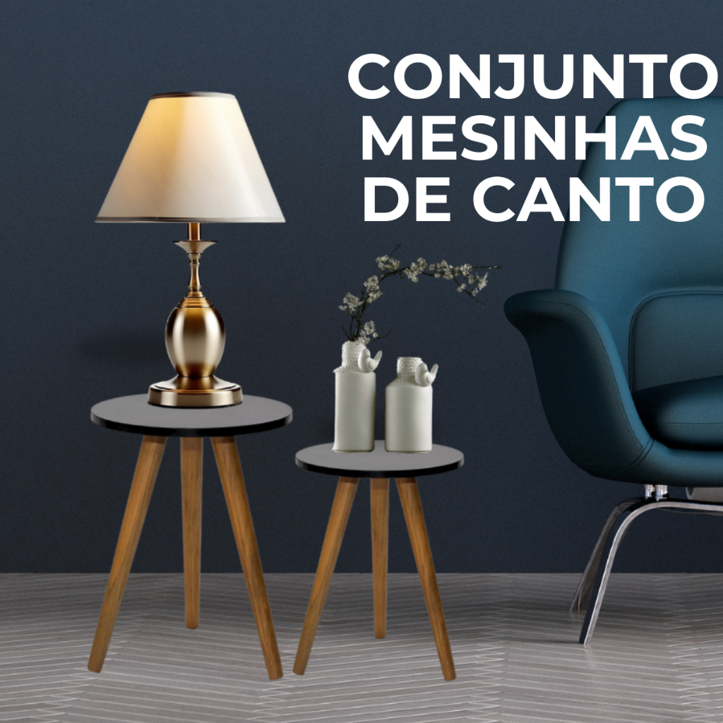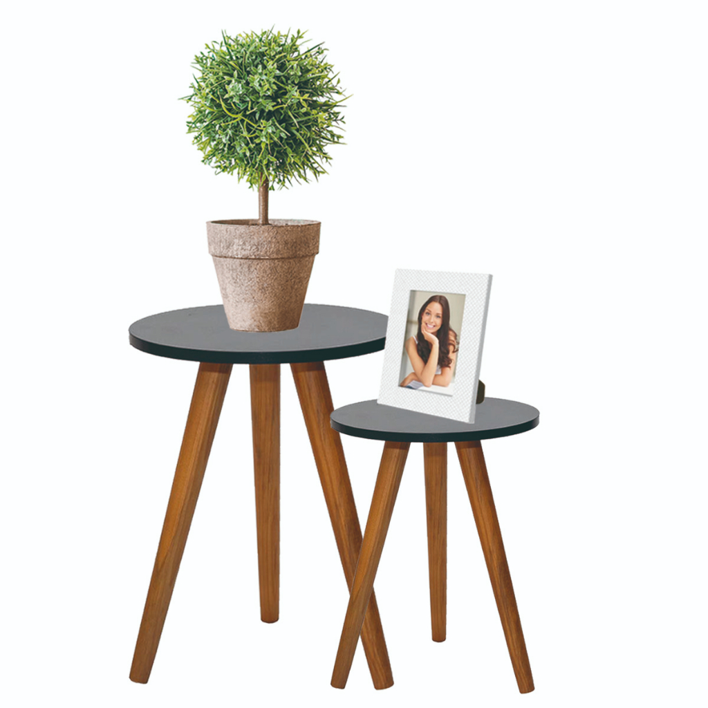 Conjunto de Mesa Lateral Pé Palito Retro Decoração MDF