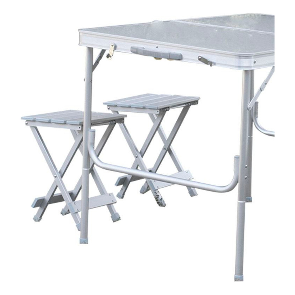 Conjunto de Mesa e Banquetas Dobrável Em Alumínio Royal Portátil Cor Cinza - Nautika