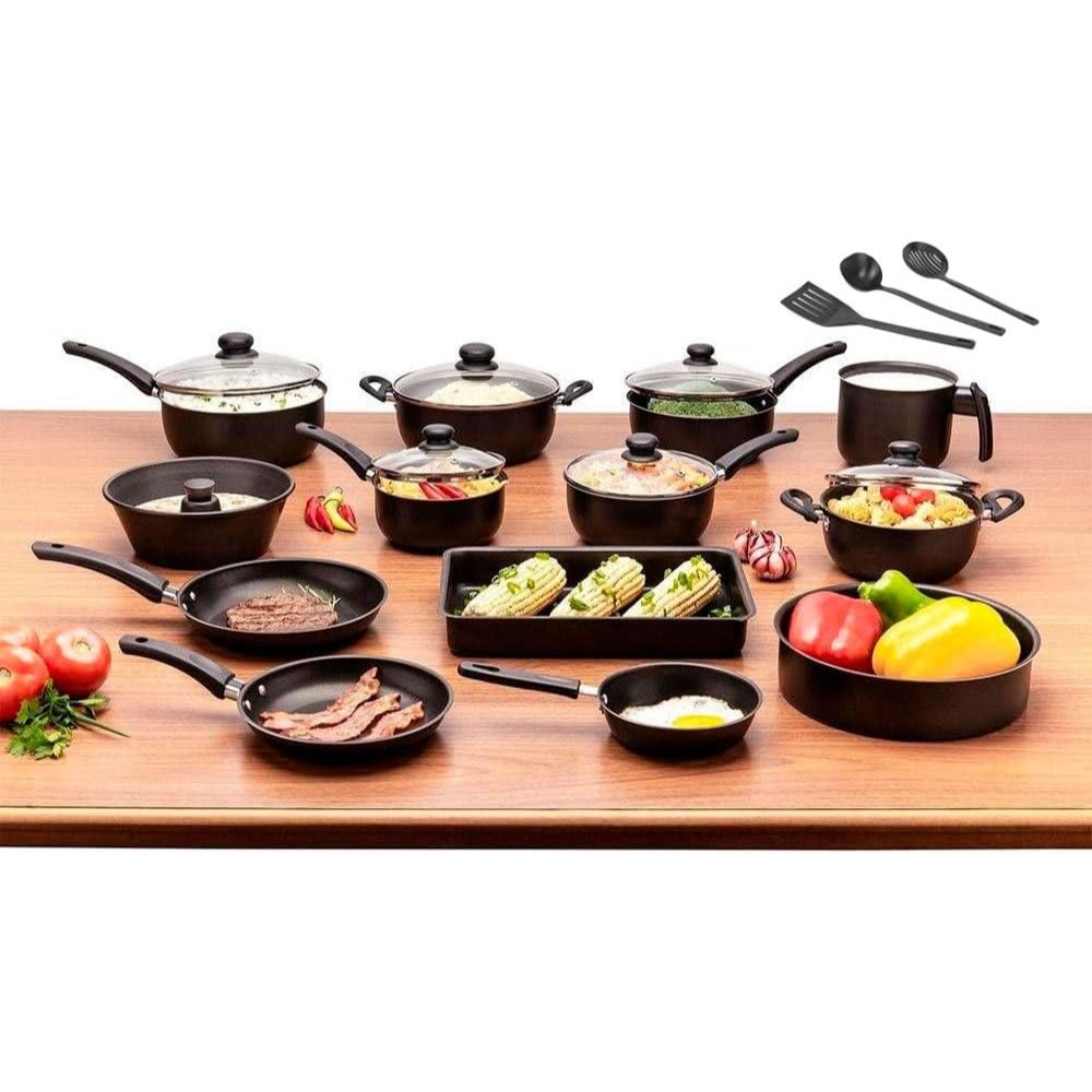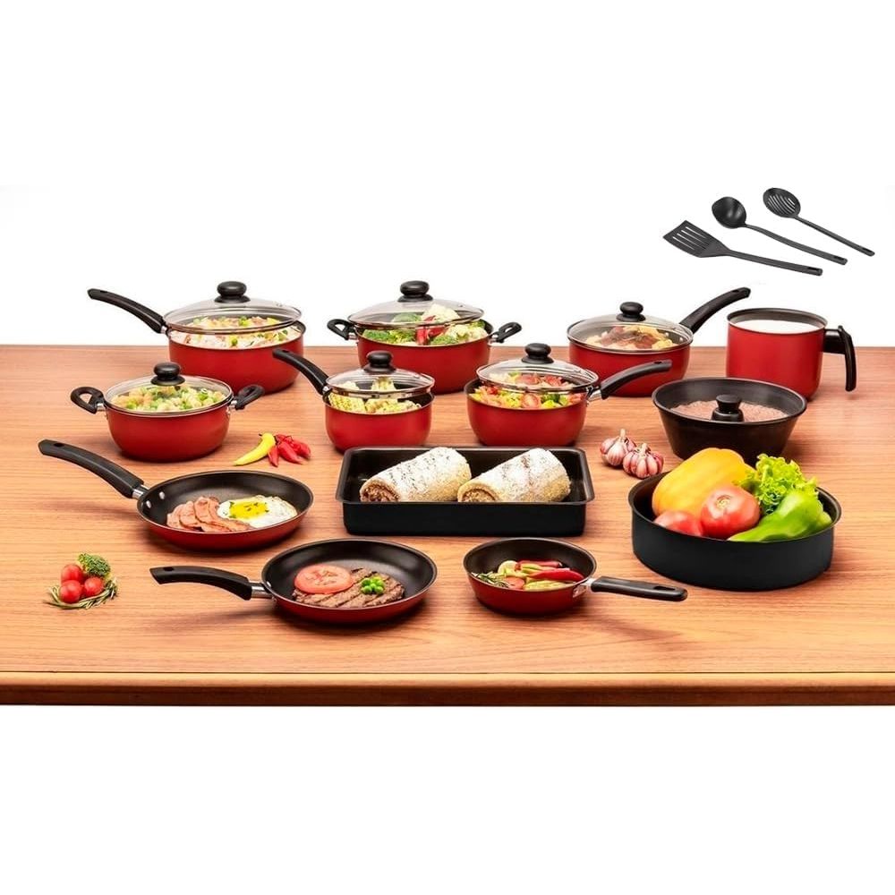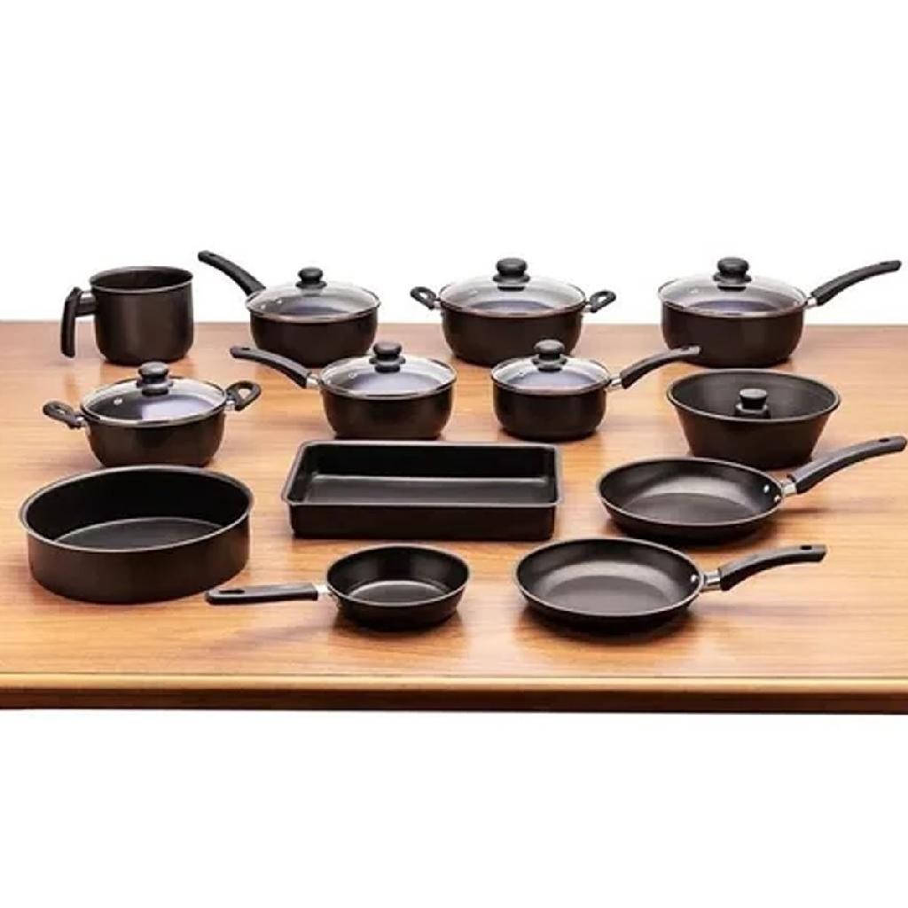 Conjunto de Panelas 16 Peças Antiaderente com Tampa de Vidro Alumínio Teflon - Dona Chefa