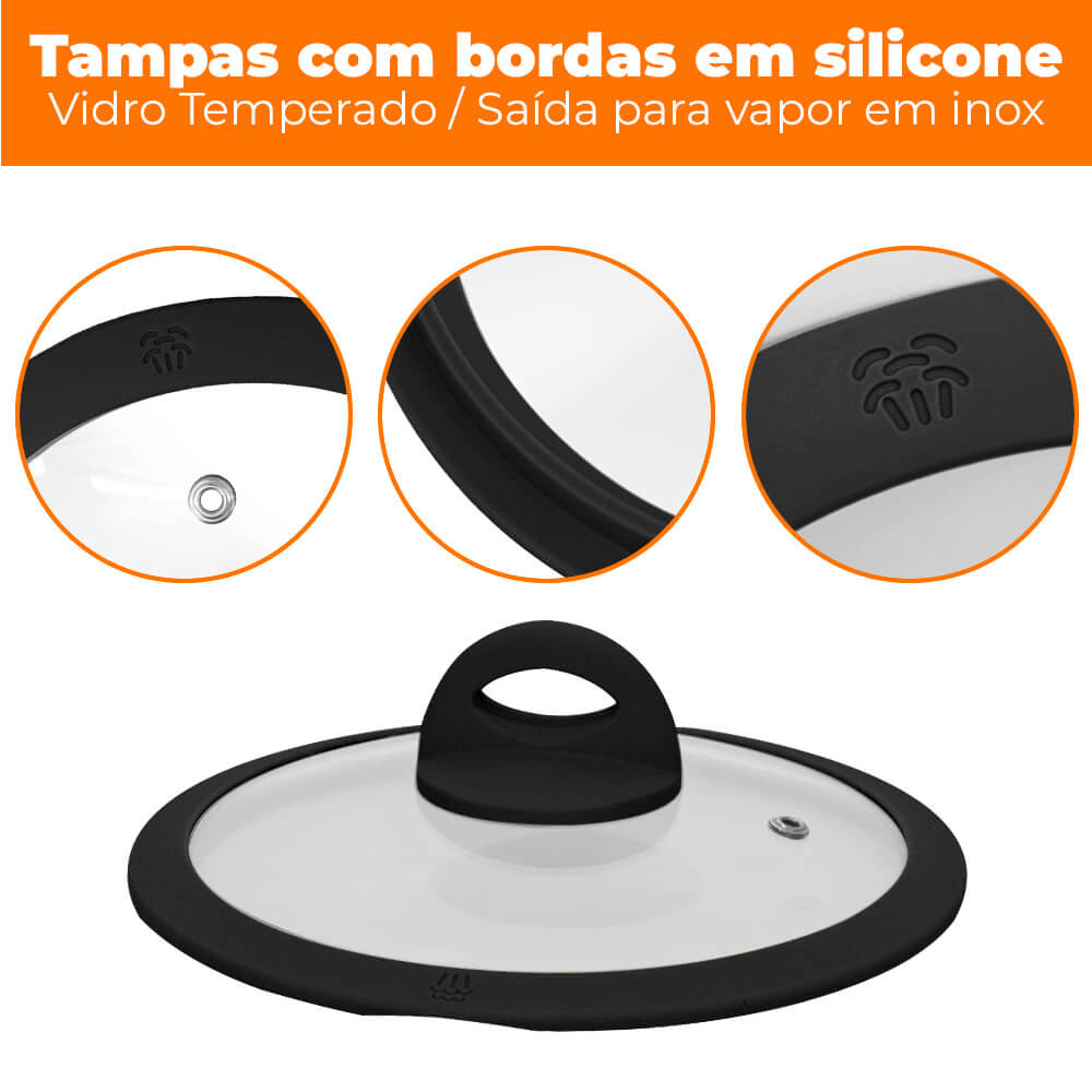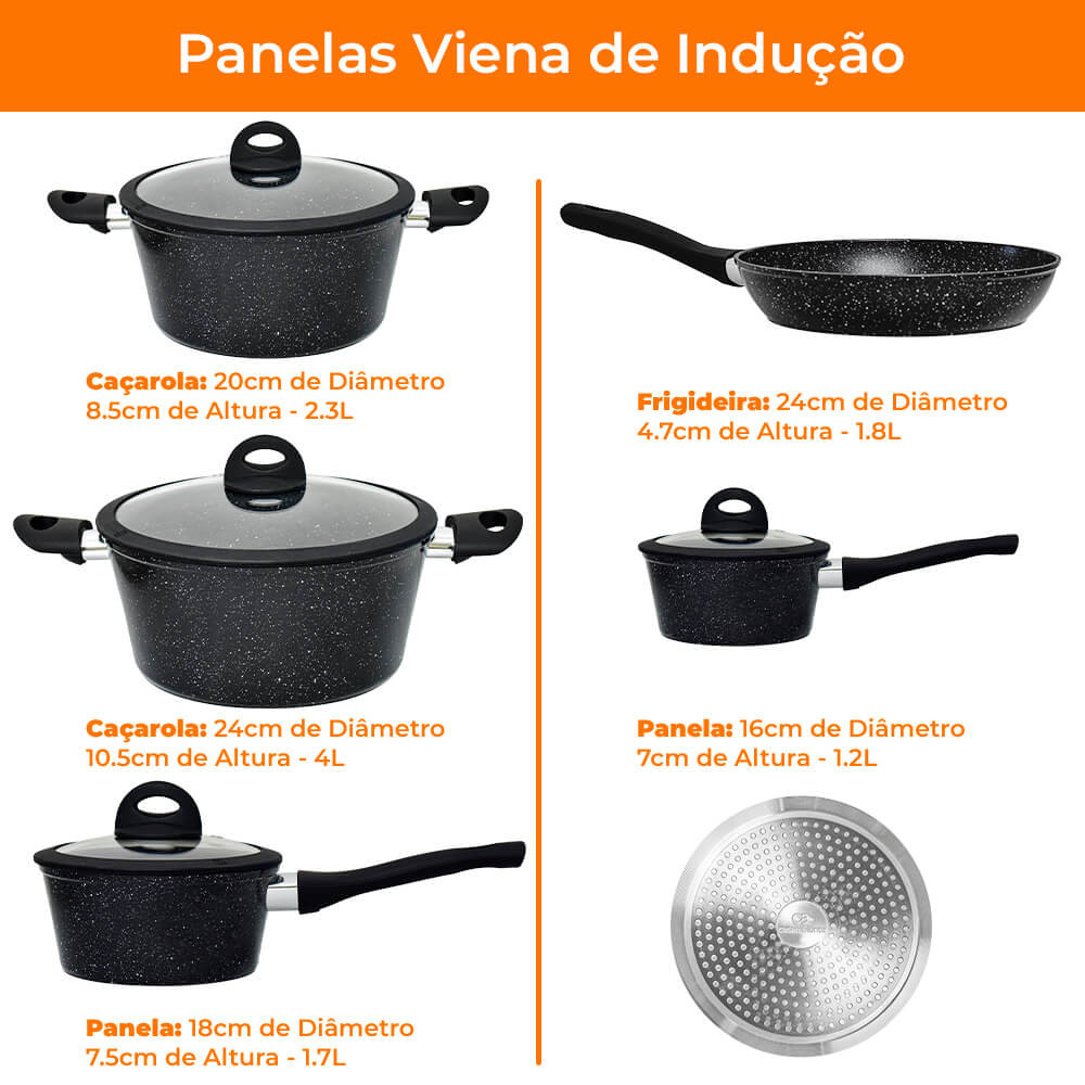 Conjunto de Panelas de Indução Antiaderente Cerâmica Viena Preto 5 peças - Casambiente
