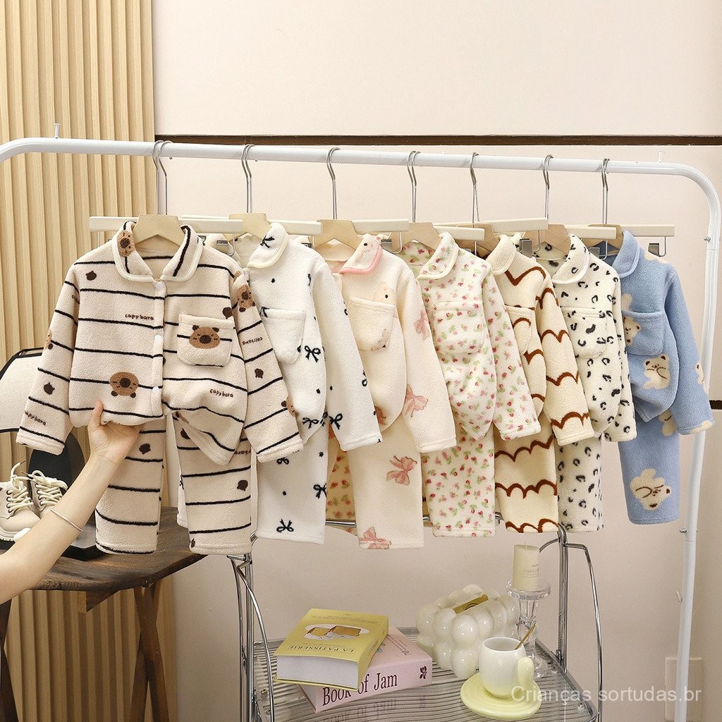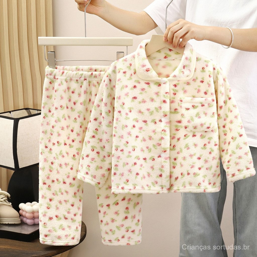 Conjunto de Pijamas para Crianças, Outono e Inverno, Forrado com Fleece, Aumentado, Roupa de Casa Quente de Veludo Azul