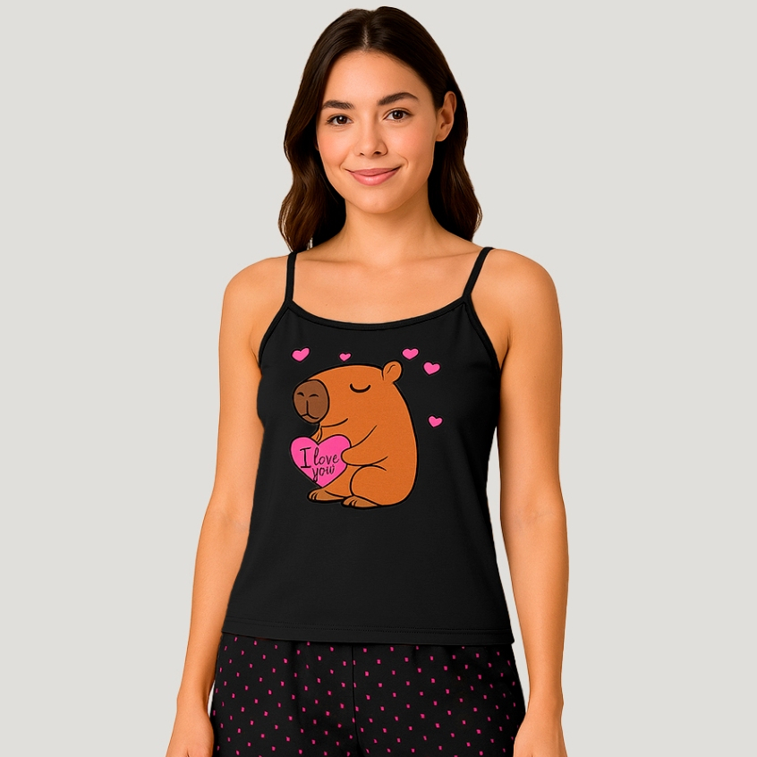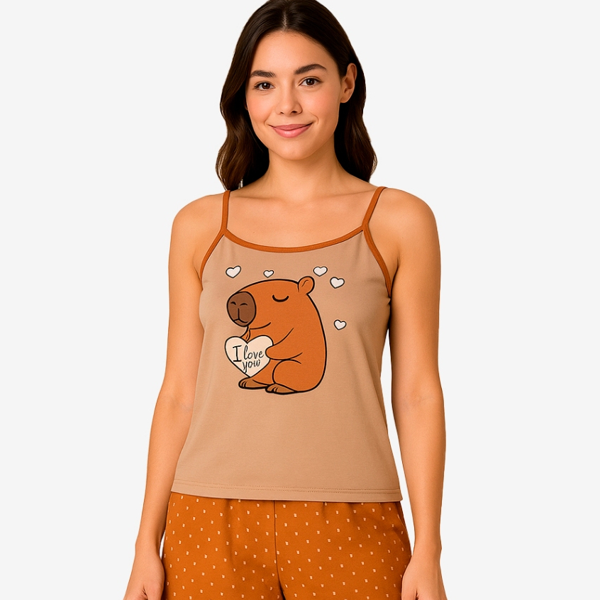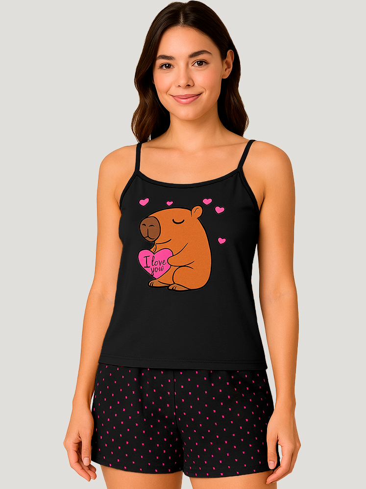 Conjunto de Verão Capivara Baby Doll Elegante Alcinha Estampado Pijama Sensual