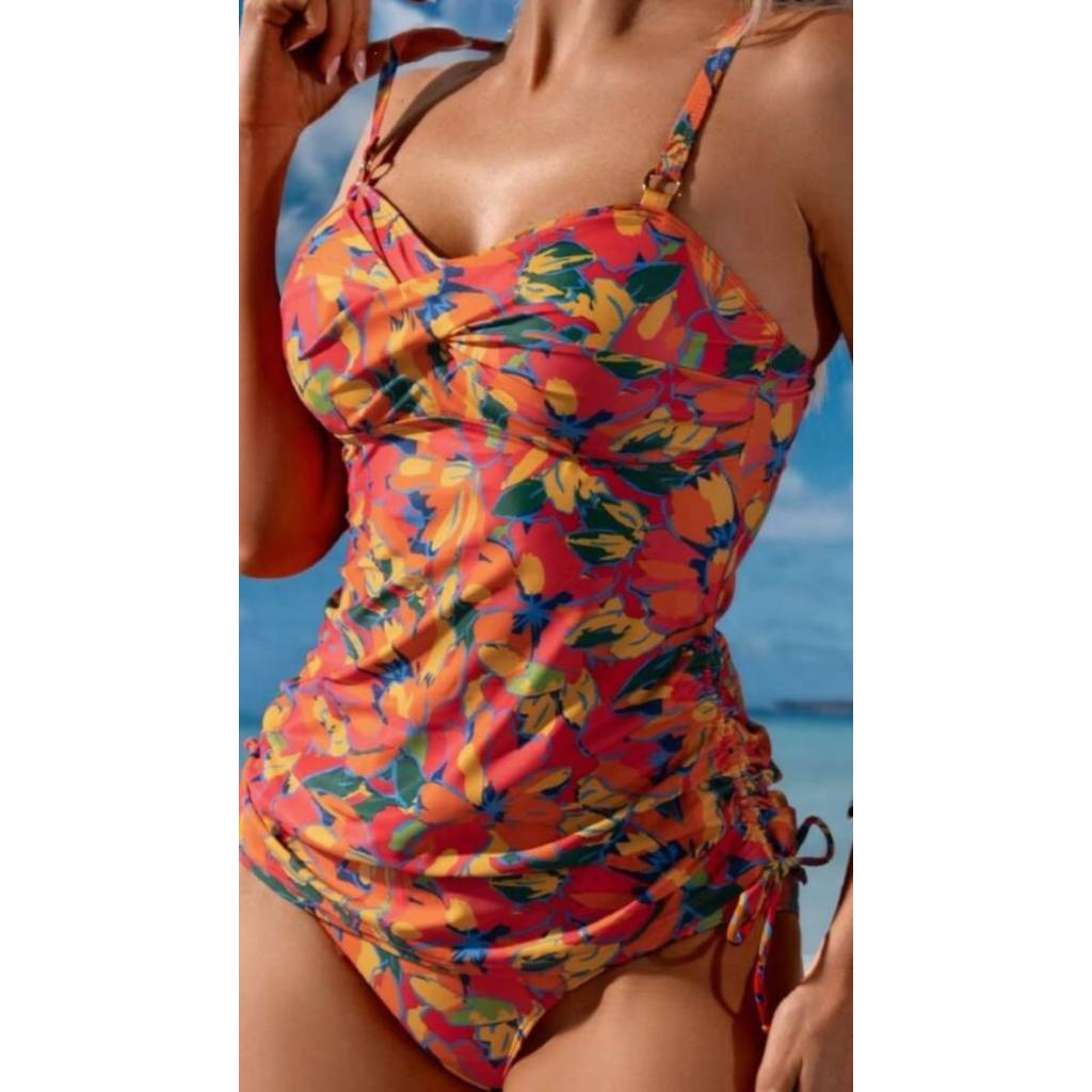 Conjunto de biquínis tankini com estampado floral as férias de verão na praia.