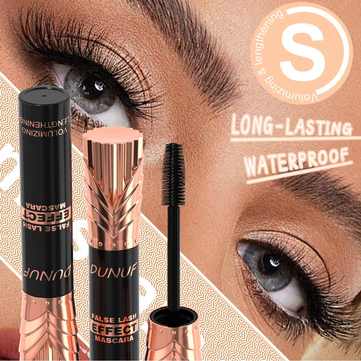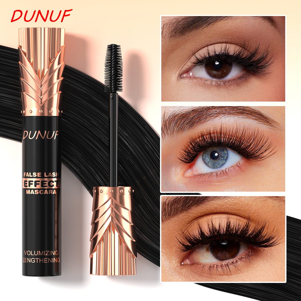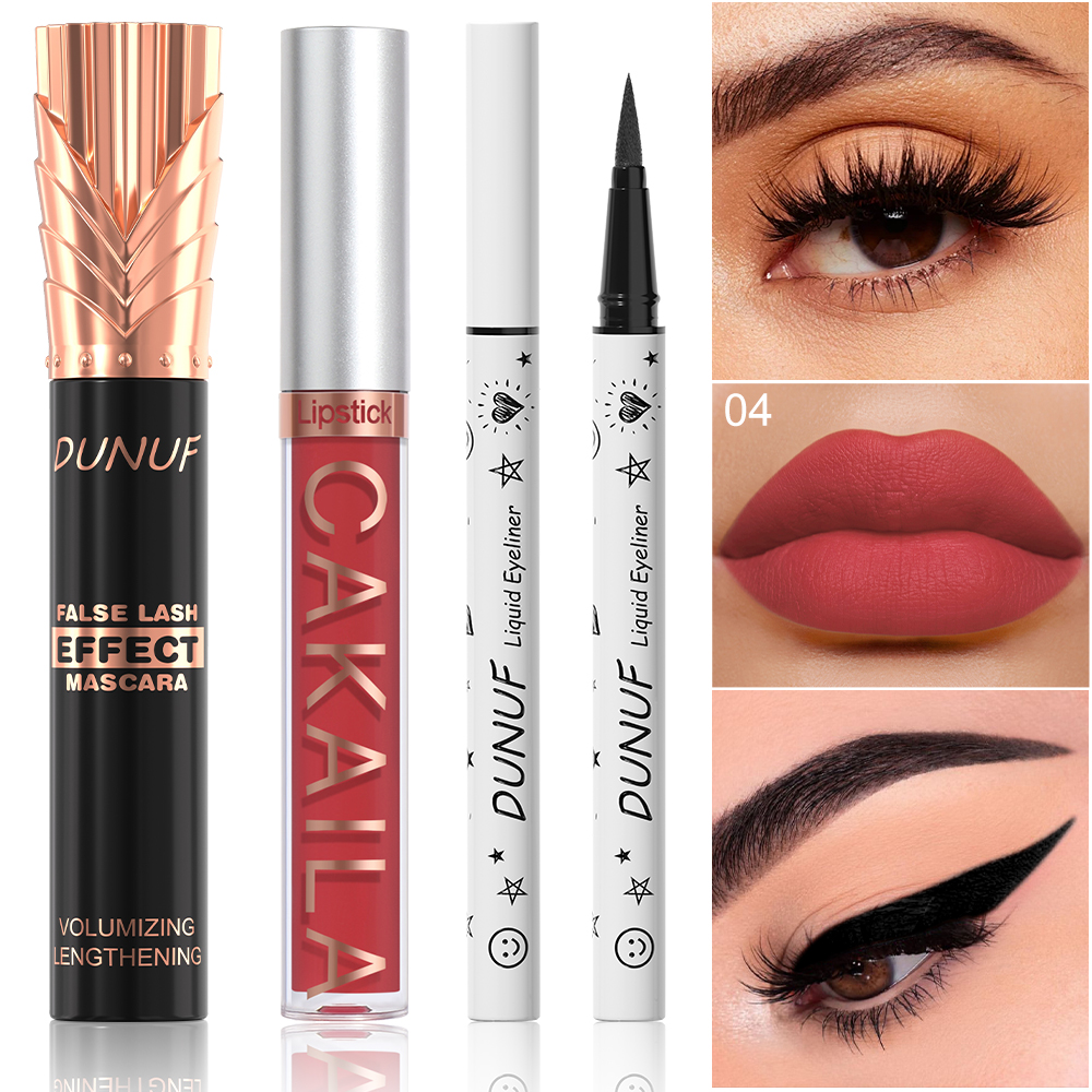 Conjunto de maquiagem, 1 batom fosco, 1 gloss labial, 1 máscara preta, 1 delineador fácil de colorir.