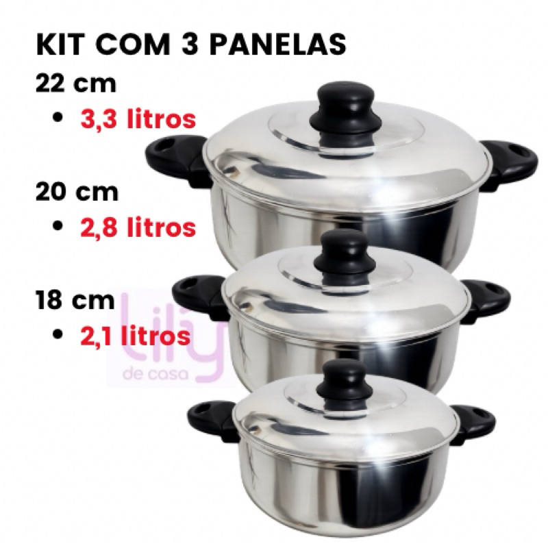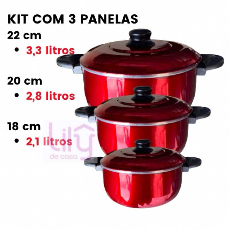 Conjunto de panelas 5 peças caçarolas Alumínio Lindíssimo Prol-lar Excelente Qualidade