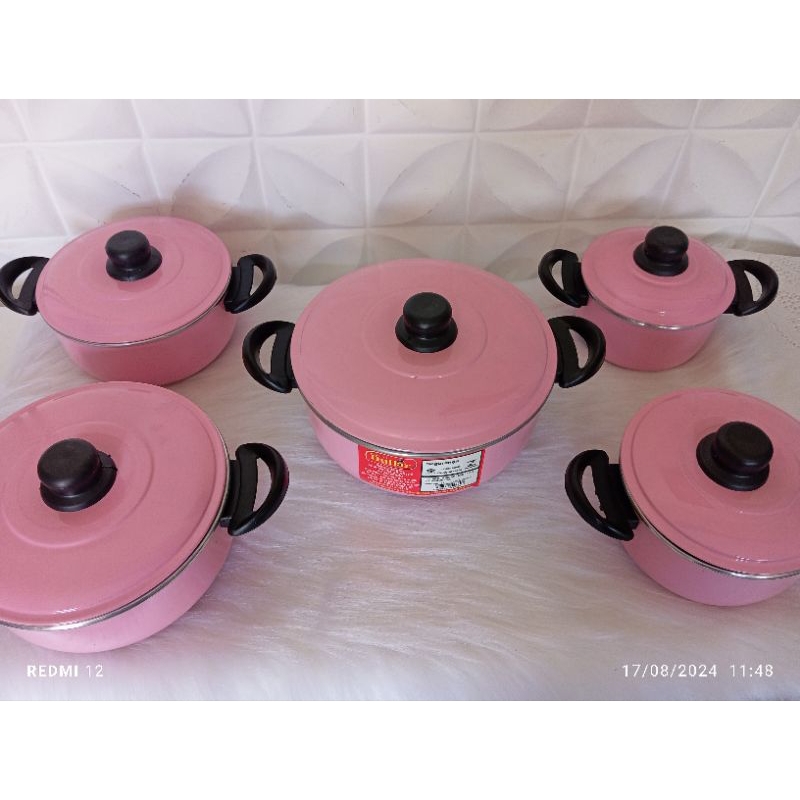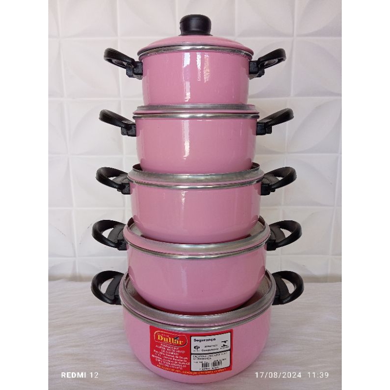 jogo de panelas com 5 peças caçarola em alumínio na cor rosa bebê, alumínio de exelente qualidade