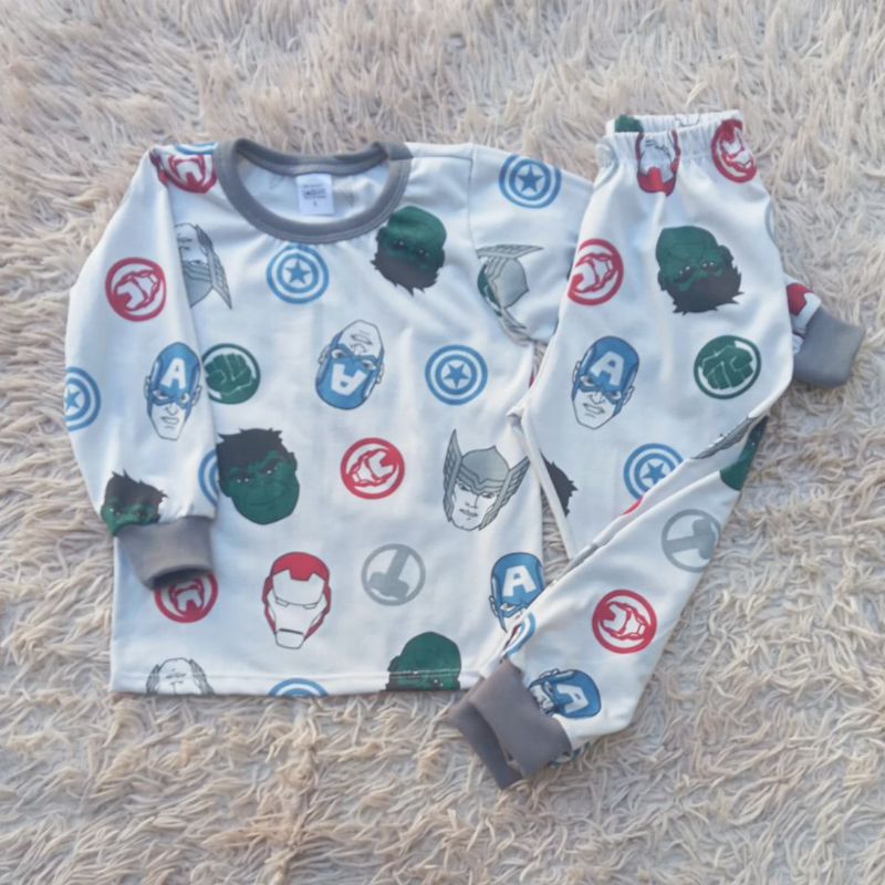 Conjunto de pijama Infantil meia estação personagens.