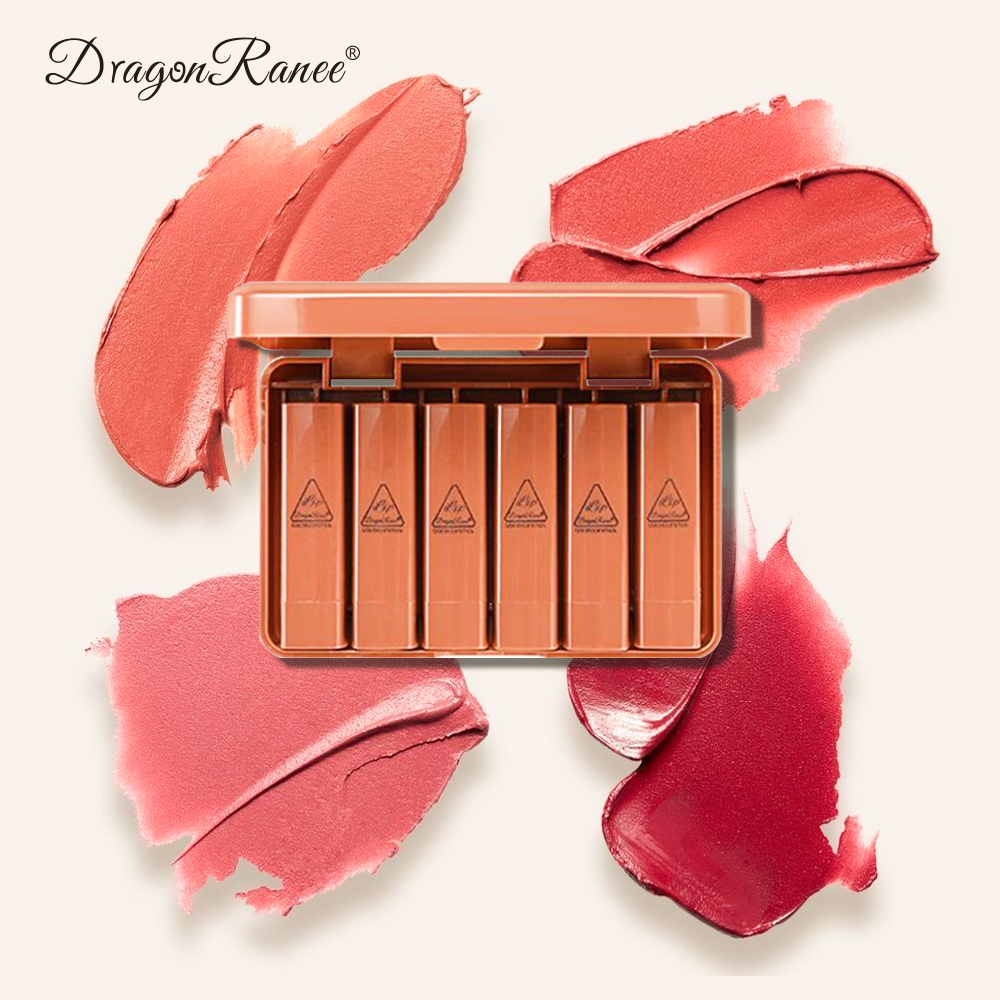 Conjunto de seis batons, caixa de conjunto fosco e delicado, fácil de colorir, não gruda no copo, à prova d'água e à