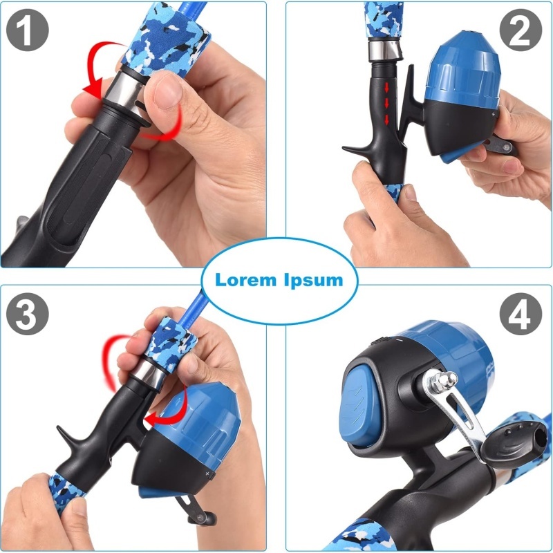 Conjunto de vara de pesca telescópica portátil de 1,2 m com camuflagem com acessórios para adolescentes e crianças