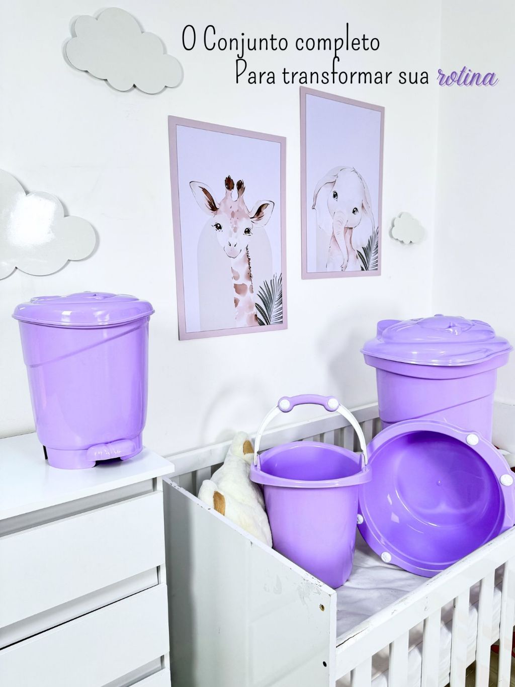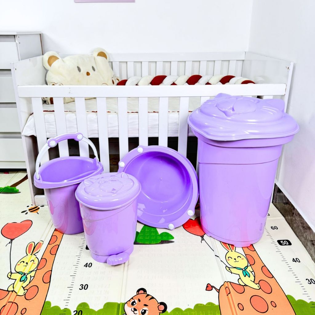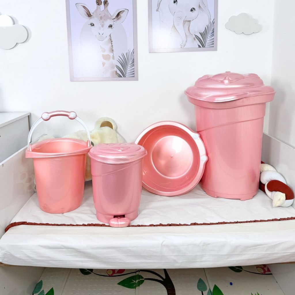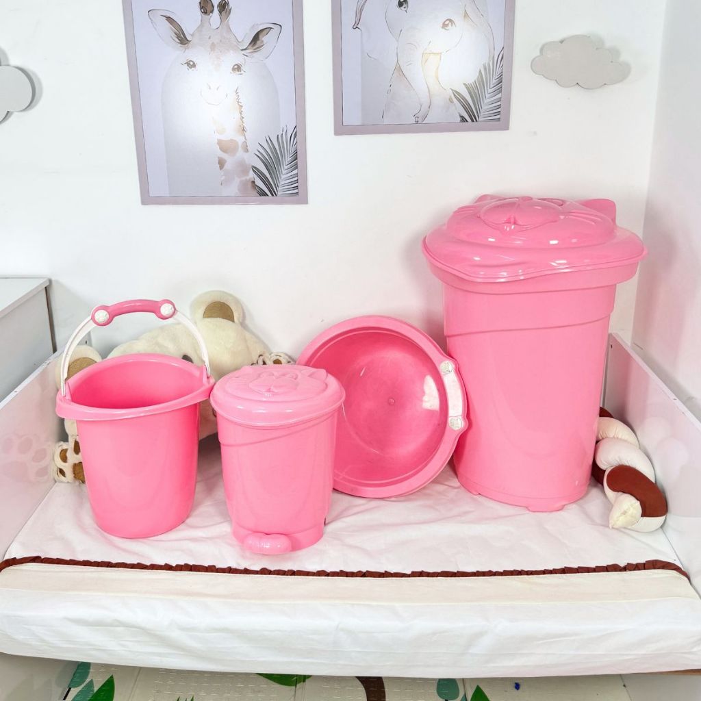 Conjunto lavanderia do bebê 4 peças plastbaby - Cesto 36l Bacia 14l e balde 11l e lixeira 8l