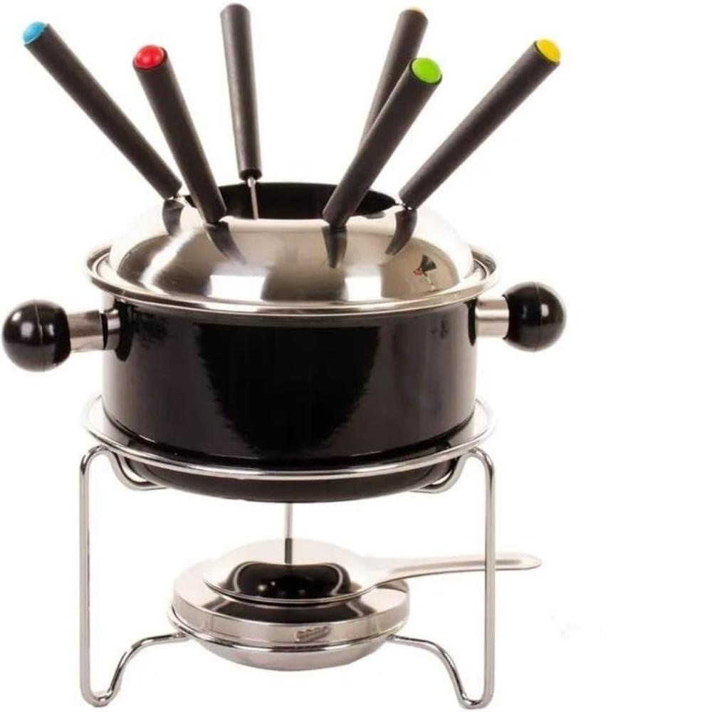 Conjunto p/ Fondue Preto 10pçs c/ 6 Garfos Inox 1L Sobremesa Jantar
