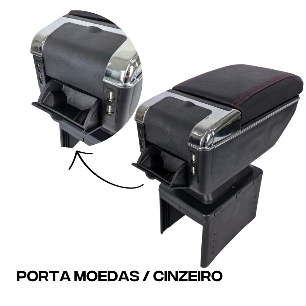 Console Apoio De Braço Universal Preto Costura Vermelha Com 7 Entradas USB