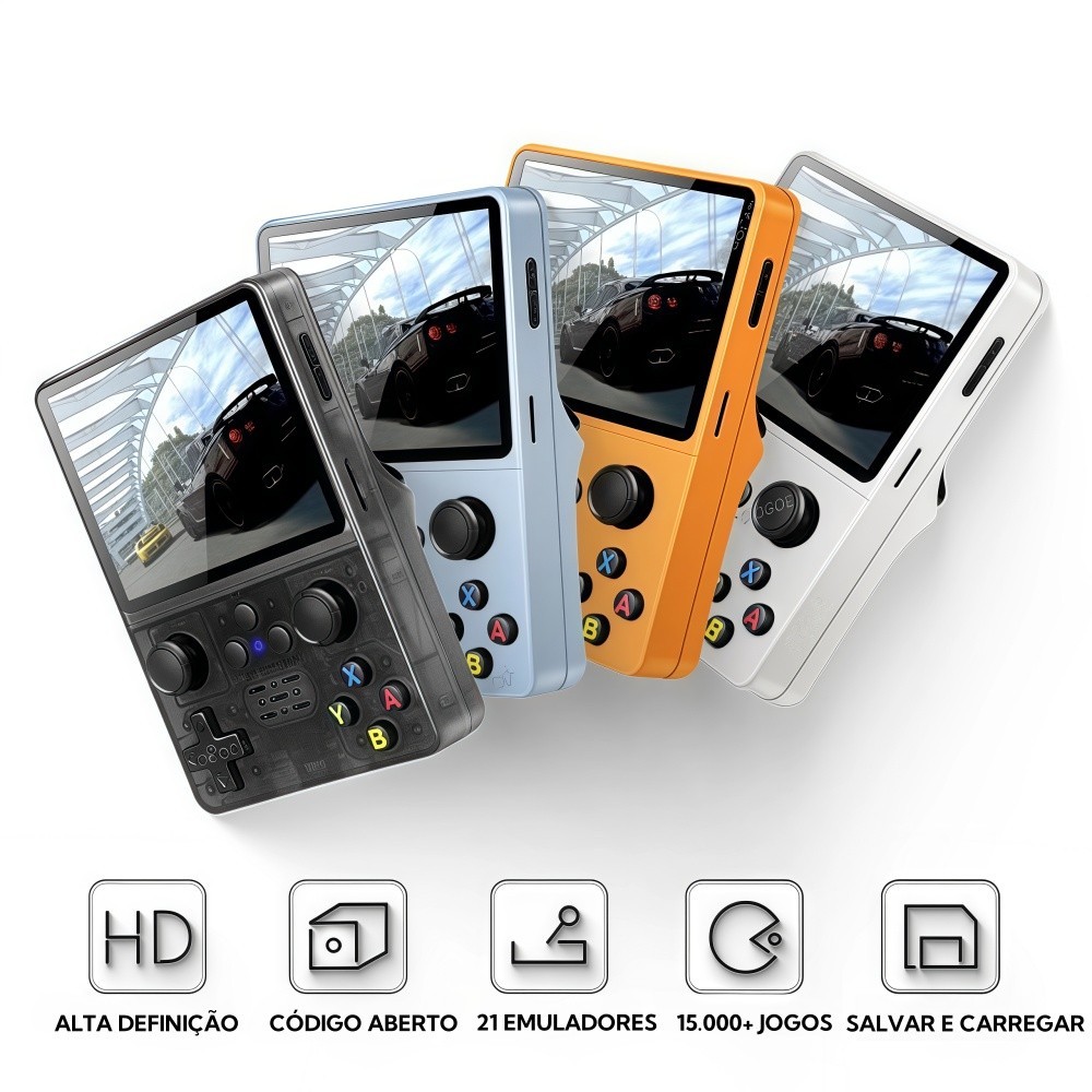 Console Portátil R35S Retro - Tela IPS 3,5", 64GB com 15000 Jogos, Linux - Ideal para Fãs de Clássicos