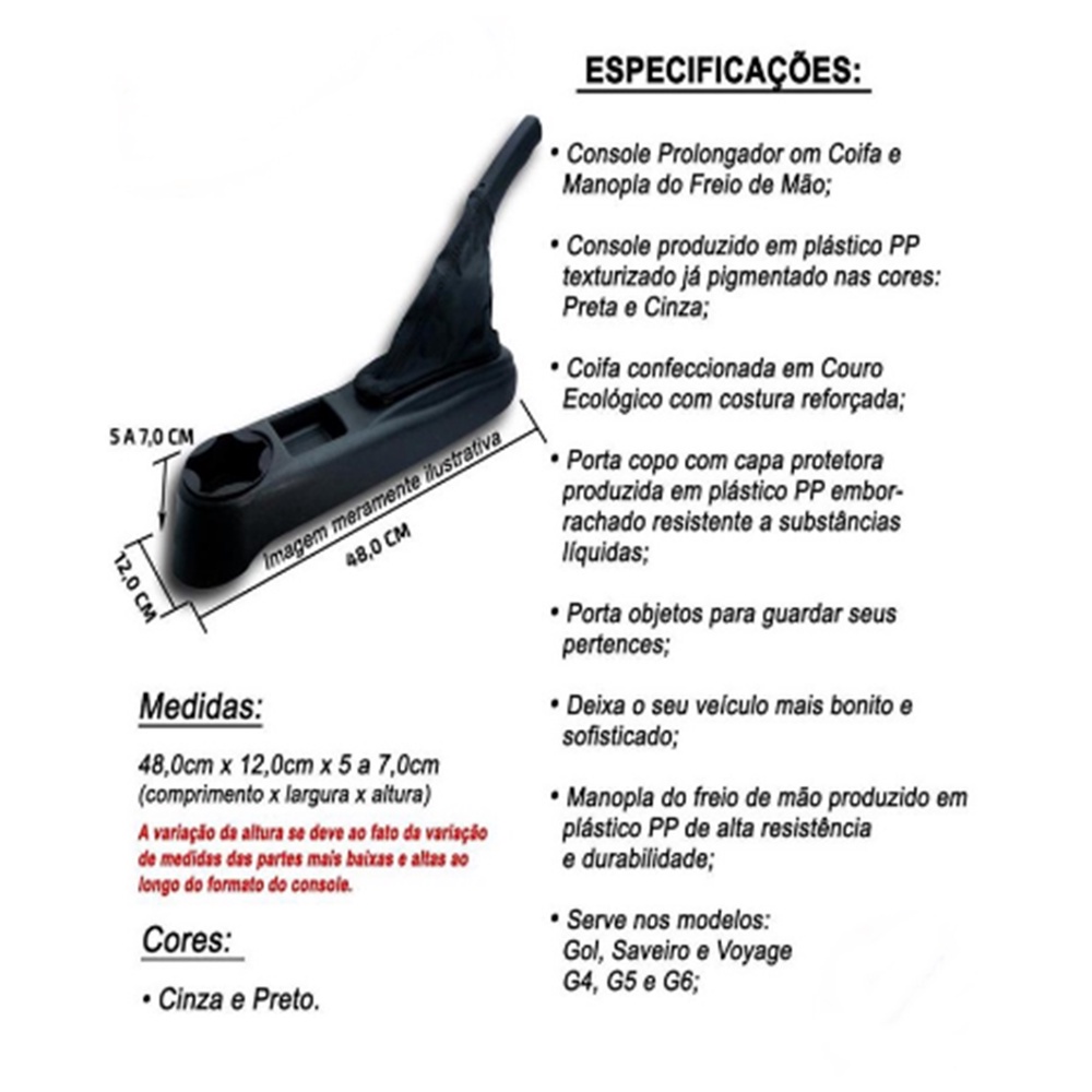 Console prolongador Gol Voyage Parati Saveiro G4 G5 G6 com OU sem Coifa de Freio Mão