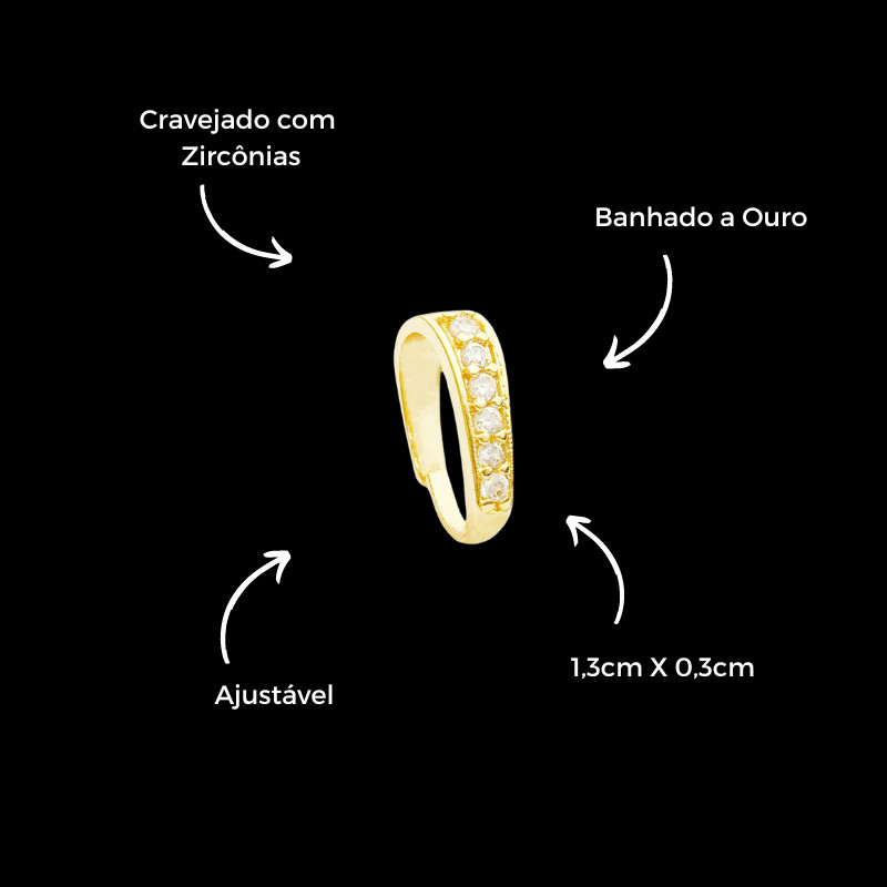 Contra Argola Ouro Cravejada Passador Pingente 1,3cm Banhado a Ouro