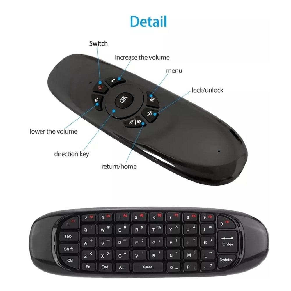 Controle Mini Teclado Mouse Wireless em LED 7 Cores Smart TV