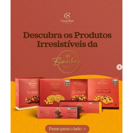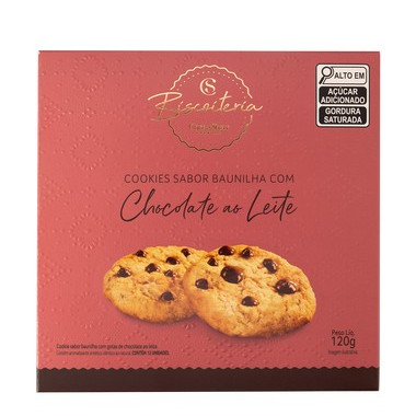 Cookies sabor baunilha com Gotas de chocolate ao Leite 120g ORIGINAL Biscoiteria Cacau Show