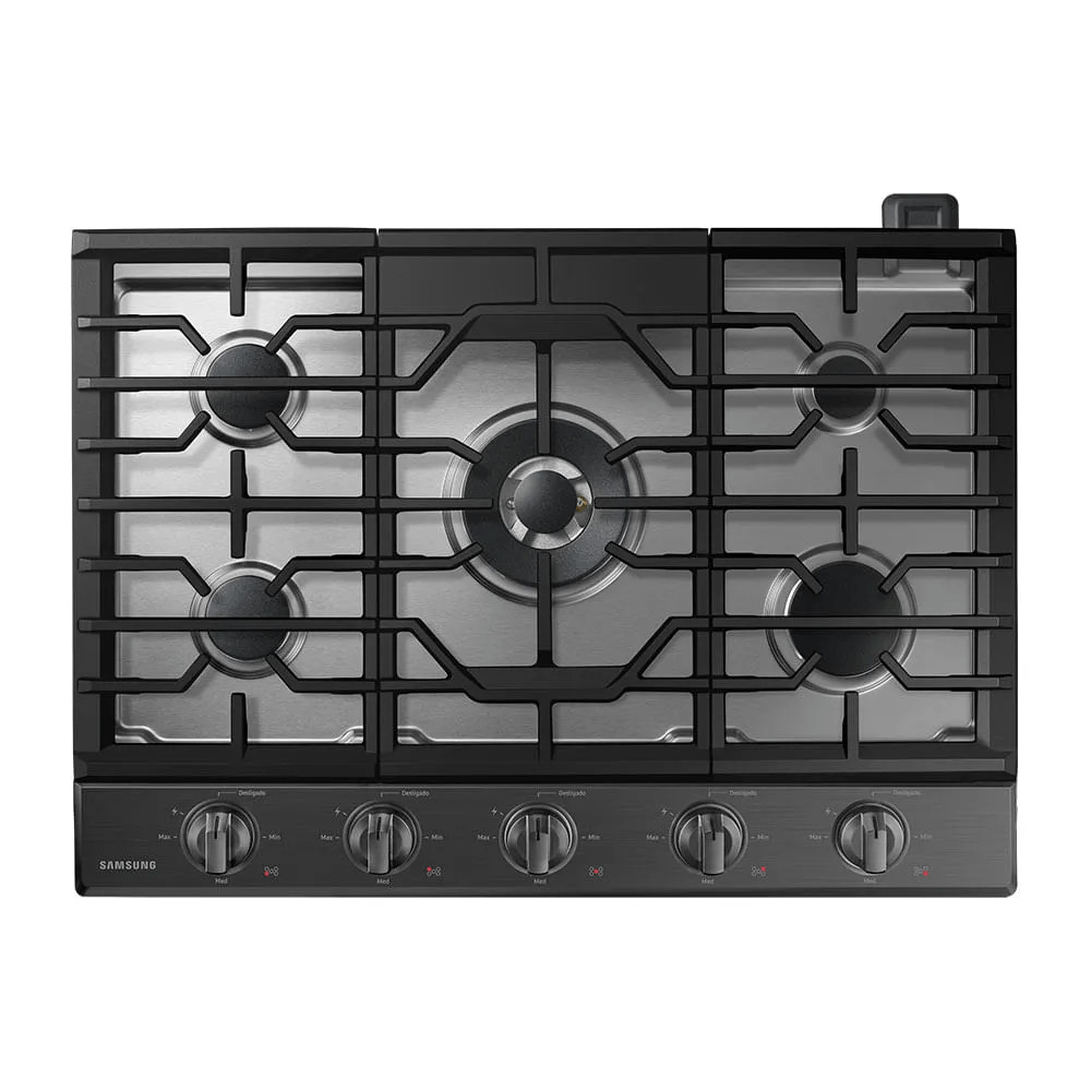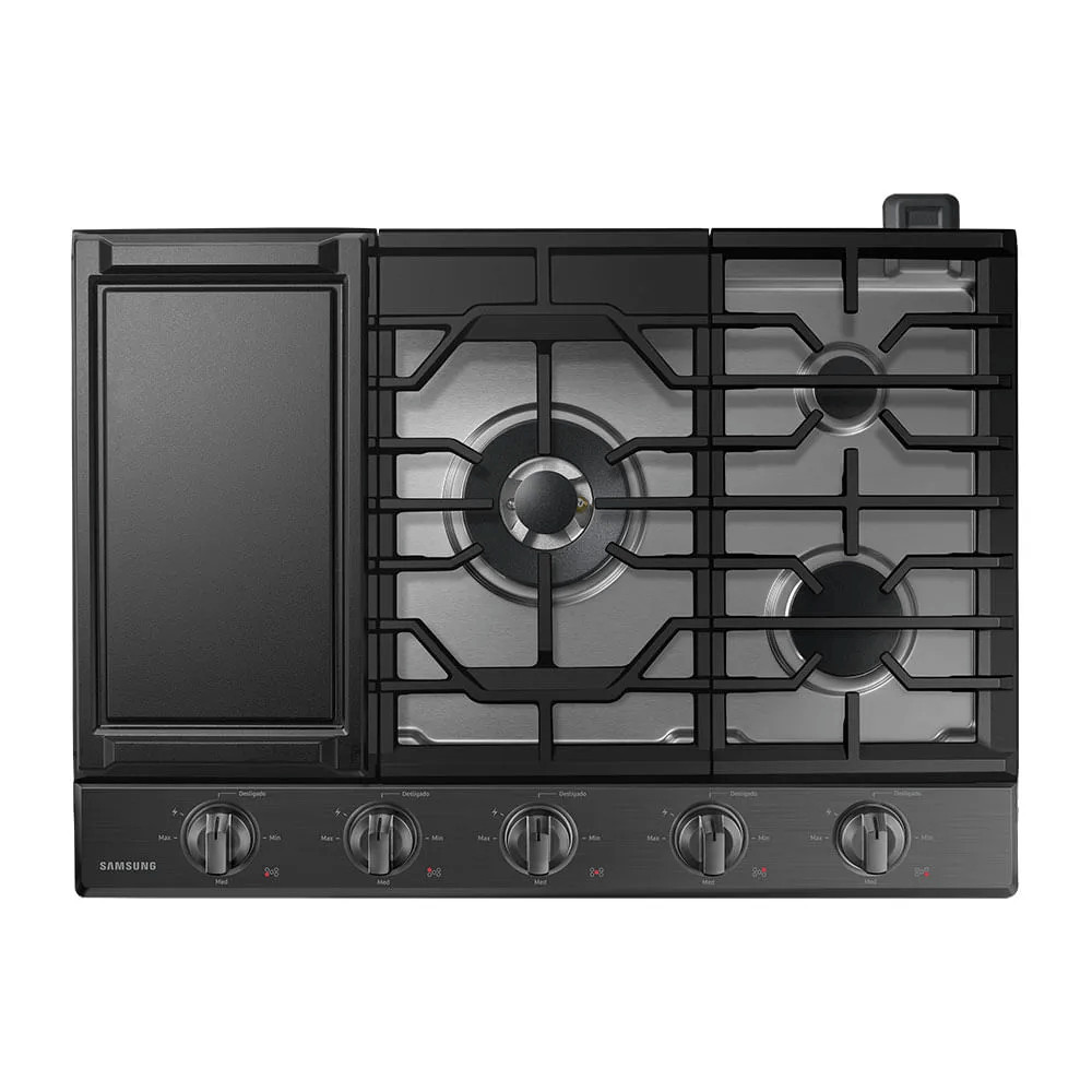 Cooktop Black Inox 5 Queimadores Wi-Fi + Kit de recirculação + Coifa Wi-Fi + Forno Elétrico Função Air Fry Wi-Fi 76L