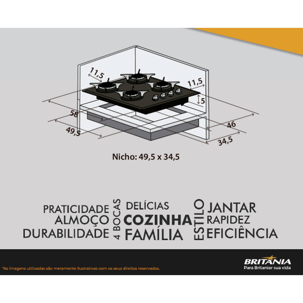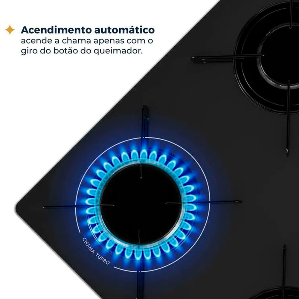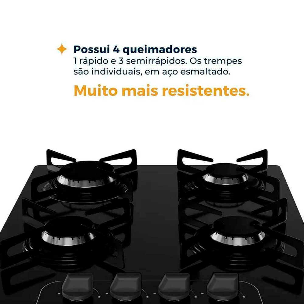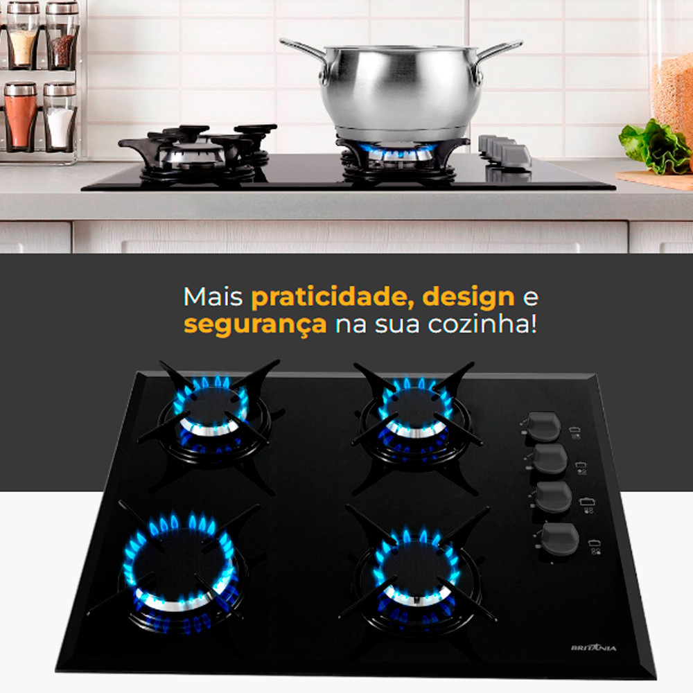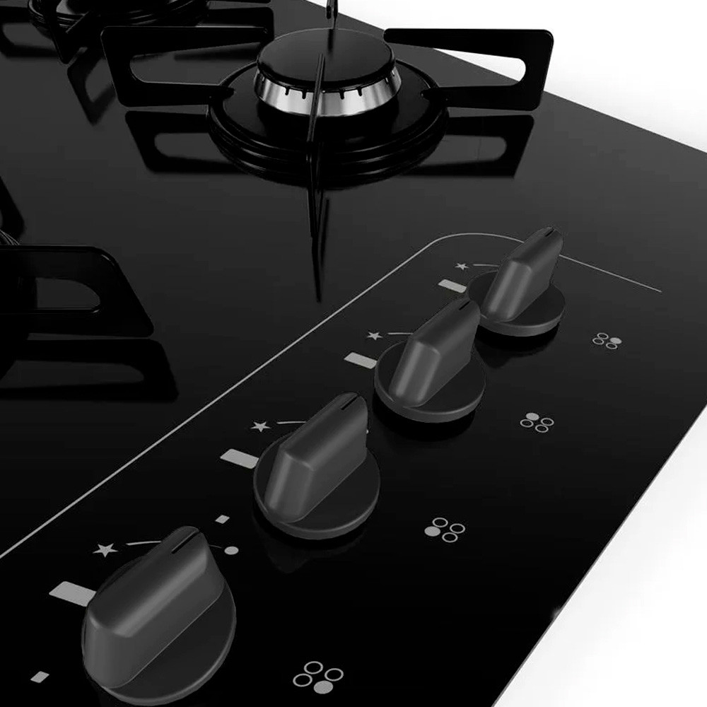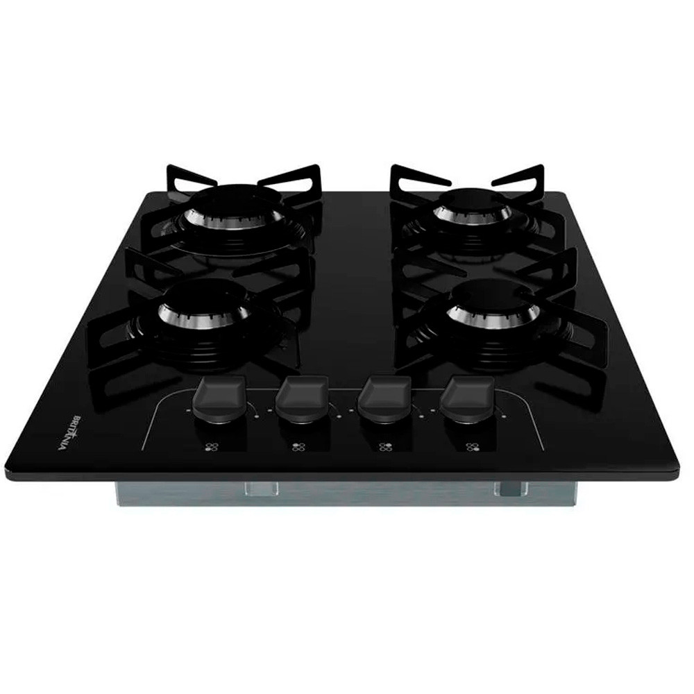 Cooktop Britânia BCT4P de Vidro Temperado 8mm 4 Bocas à Gás Bivolt Acendimento Superautomático