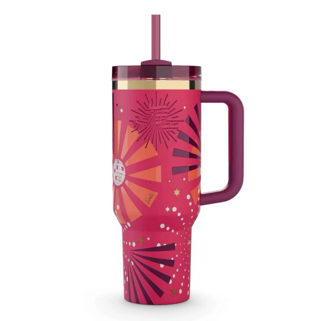 Copo Barbie 1200ml Inox Com Tampa e Canudo Personalizado