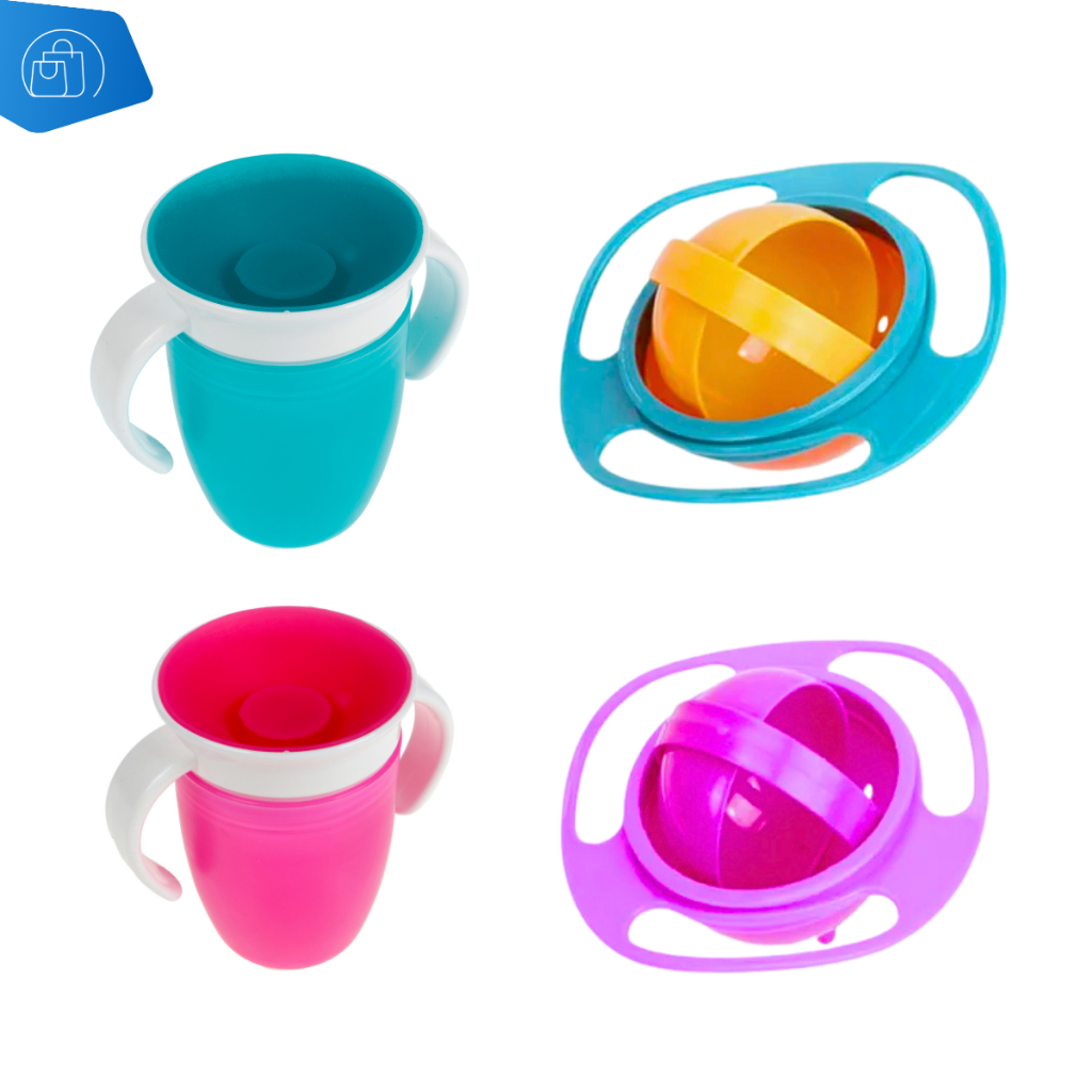 Copo De Transição Treinamento e Pratinho 360° Bebê Infantil Antivazamento Com Alça Sem Bico