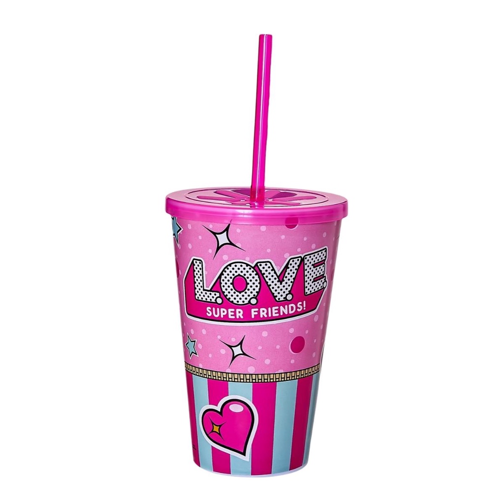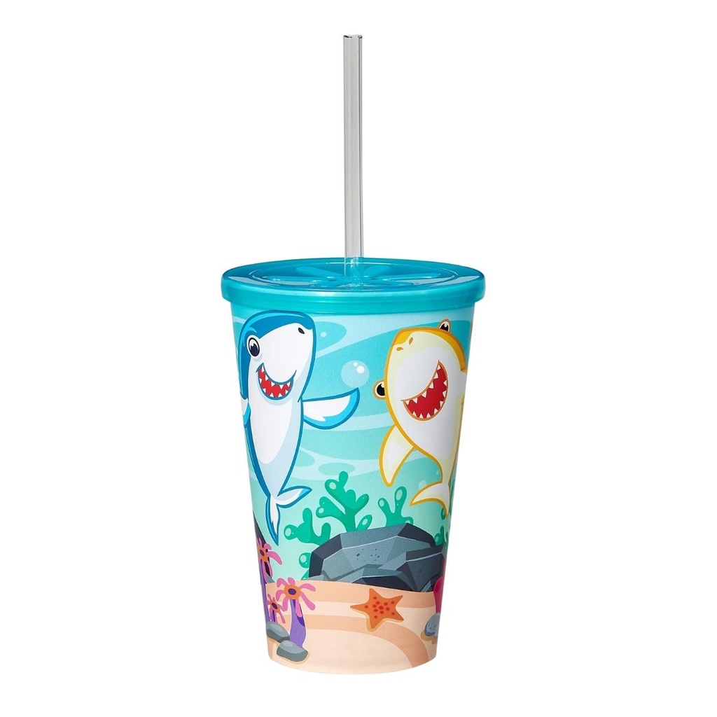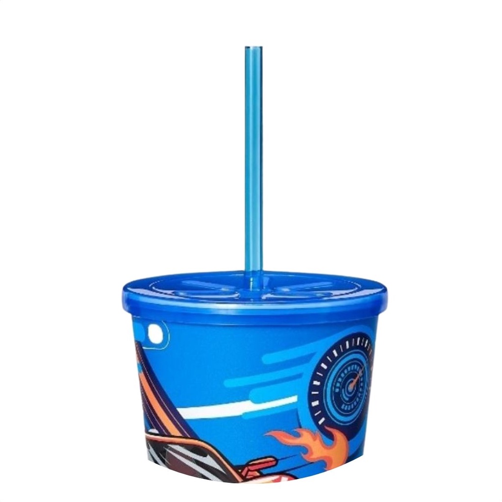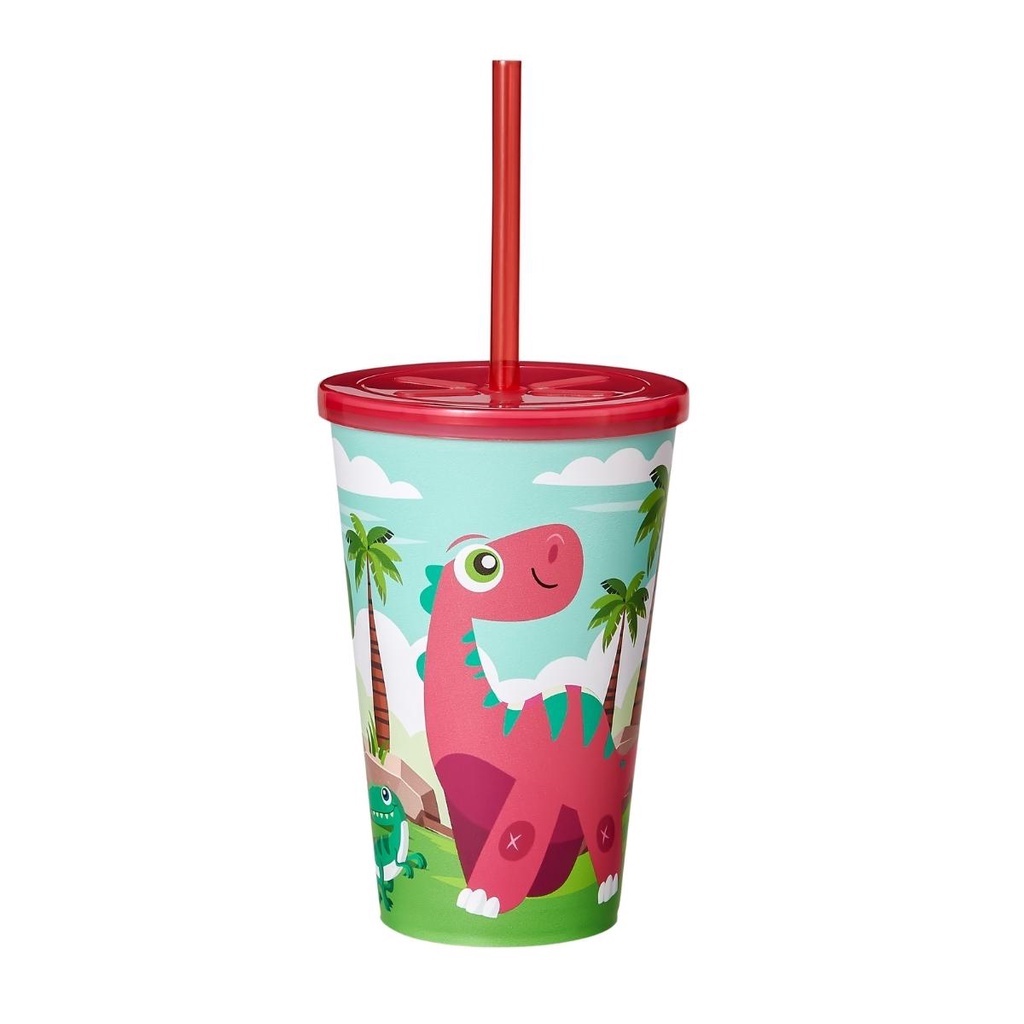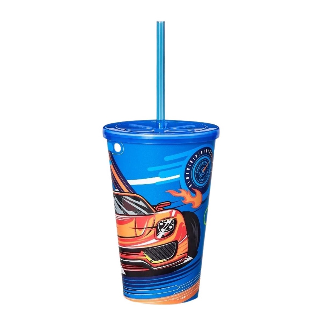Copo Infantil 550ml Decorado Tampa Reta E Canudo Resistente Para Crianças Usual