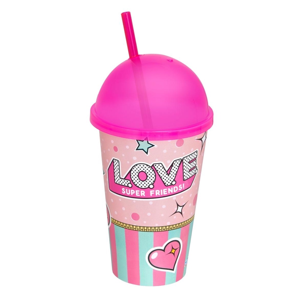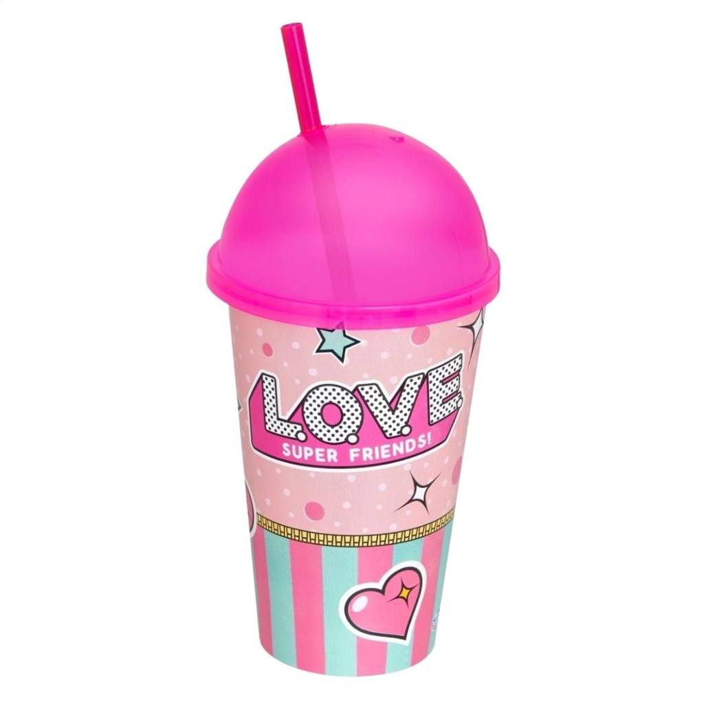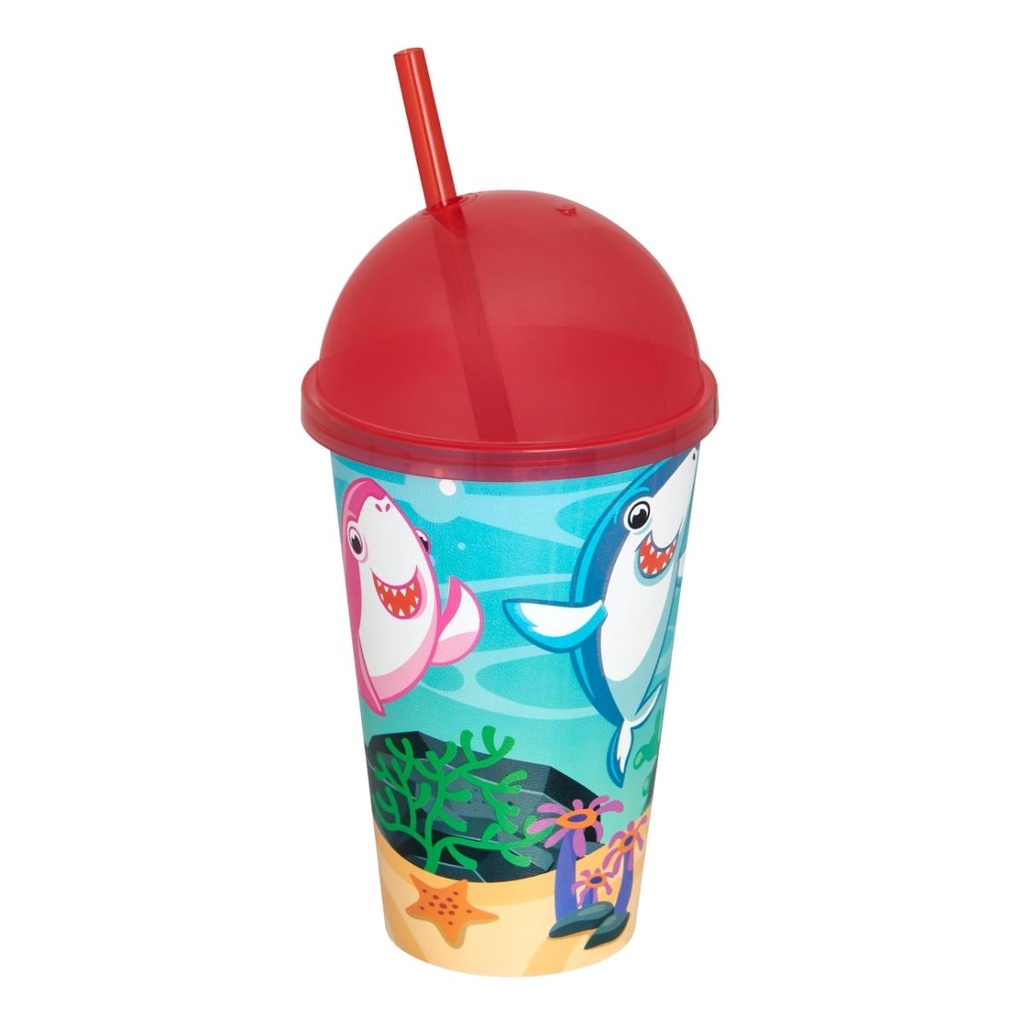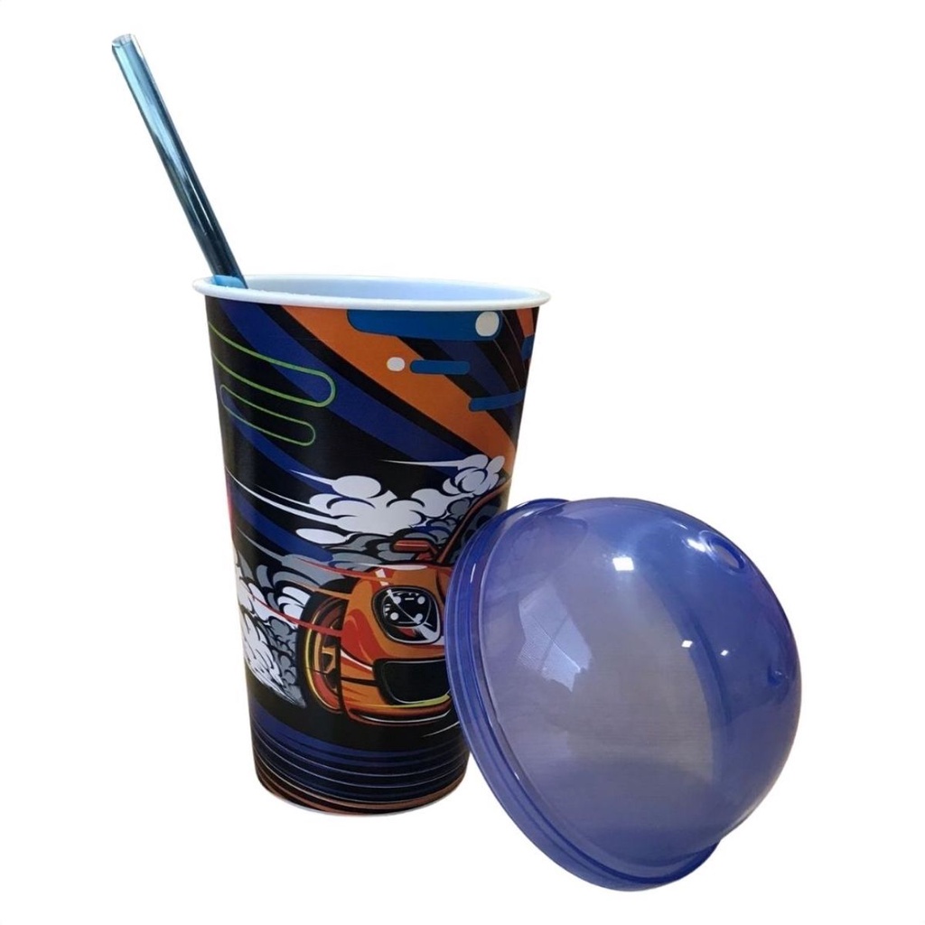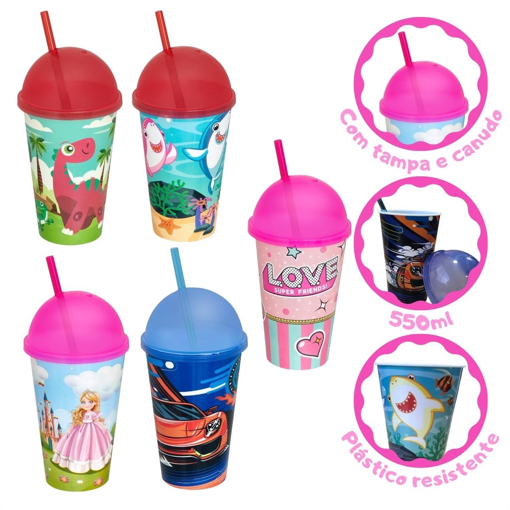 Copo Infantil Divertido 550ml Colorido com Tampa e Canudo Brinquedos Usual