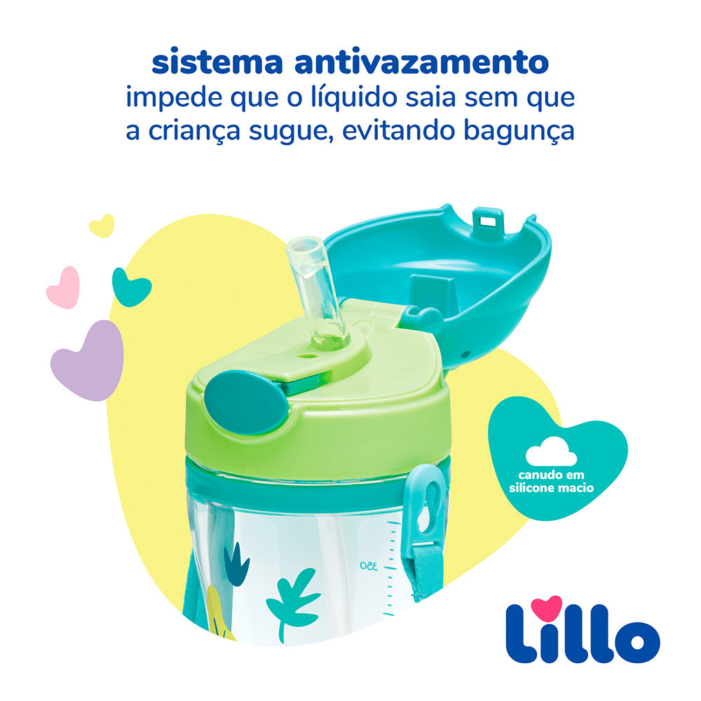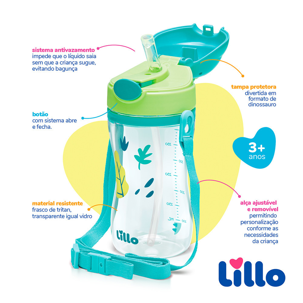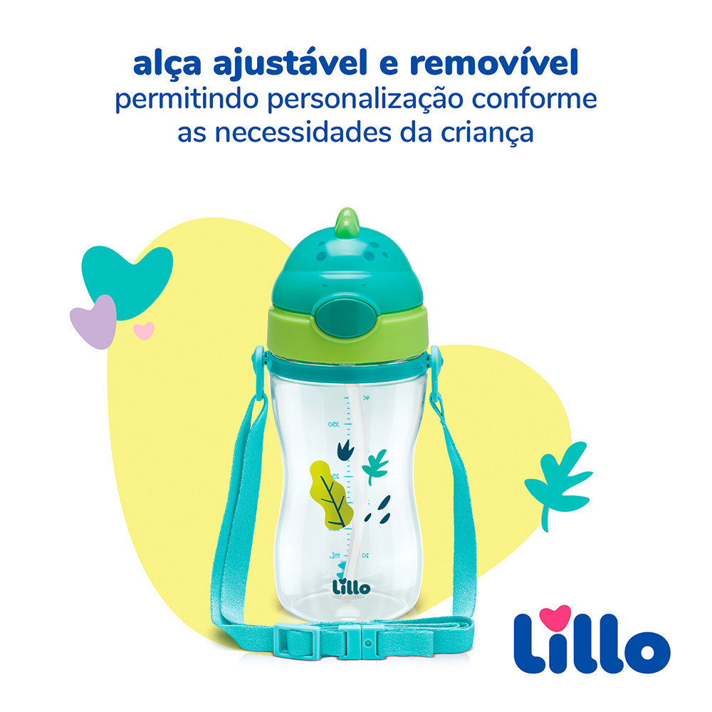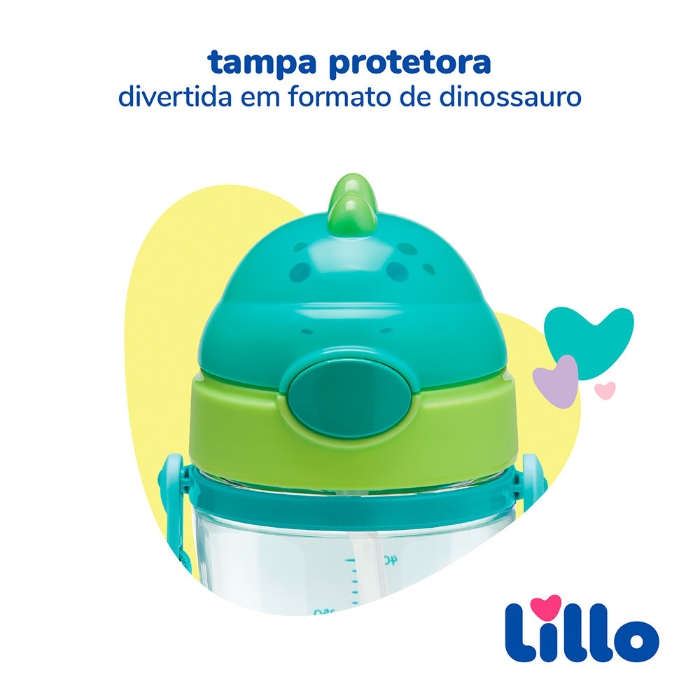 Copo Infantil Tritan C/ Alça e Canudo Dinossauro 400ml Lillo