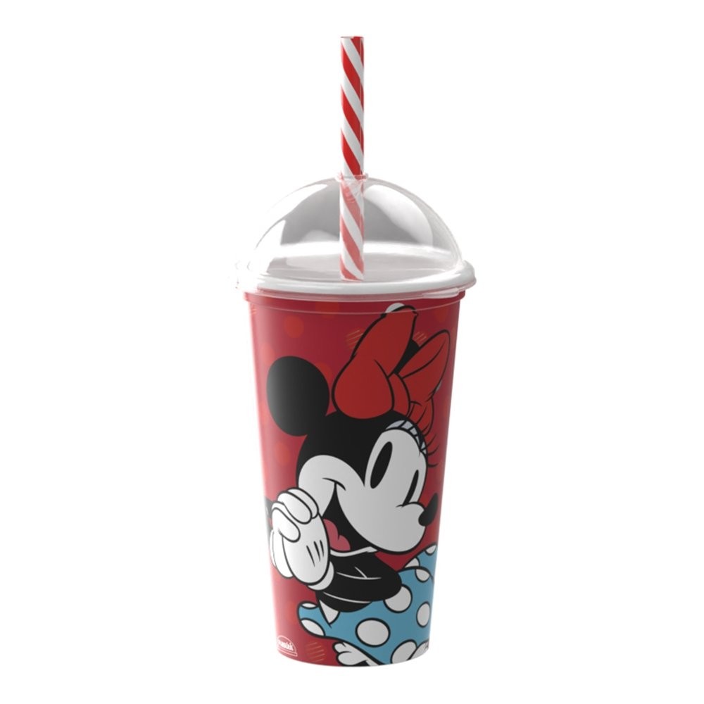Copo Plasútil Shake Minnie com Tampa e Canudo 500ml - Embalagem com 15 Unidades