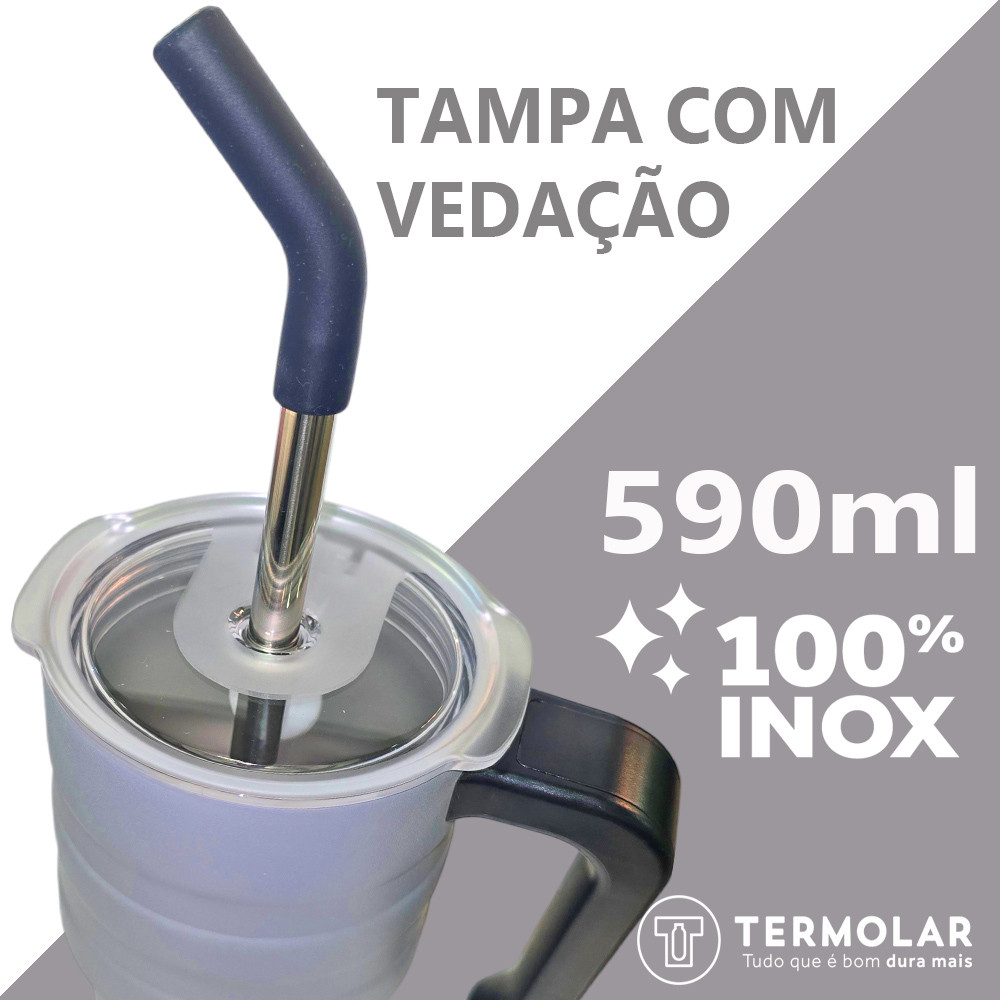 Copo Térmico Com Tampa E Canudo 590ml Inox 304 Antivazamento Para Café Chá Refrigerante Termolar