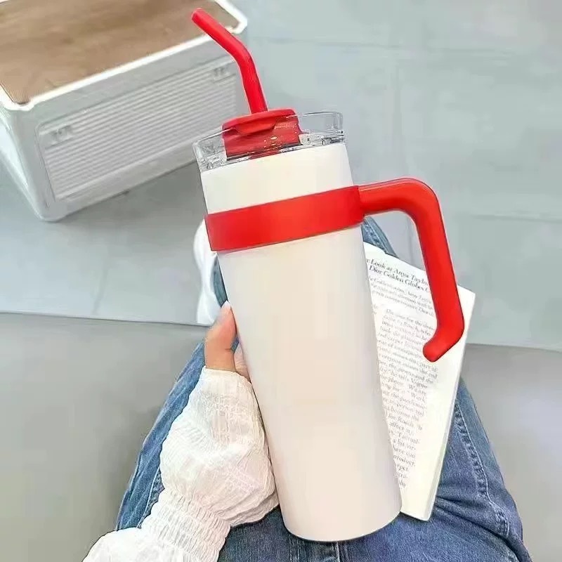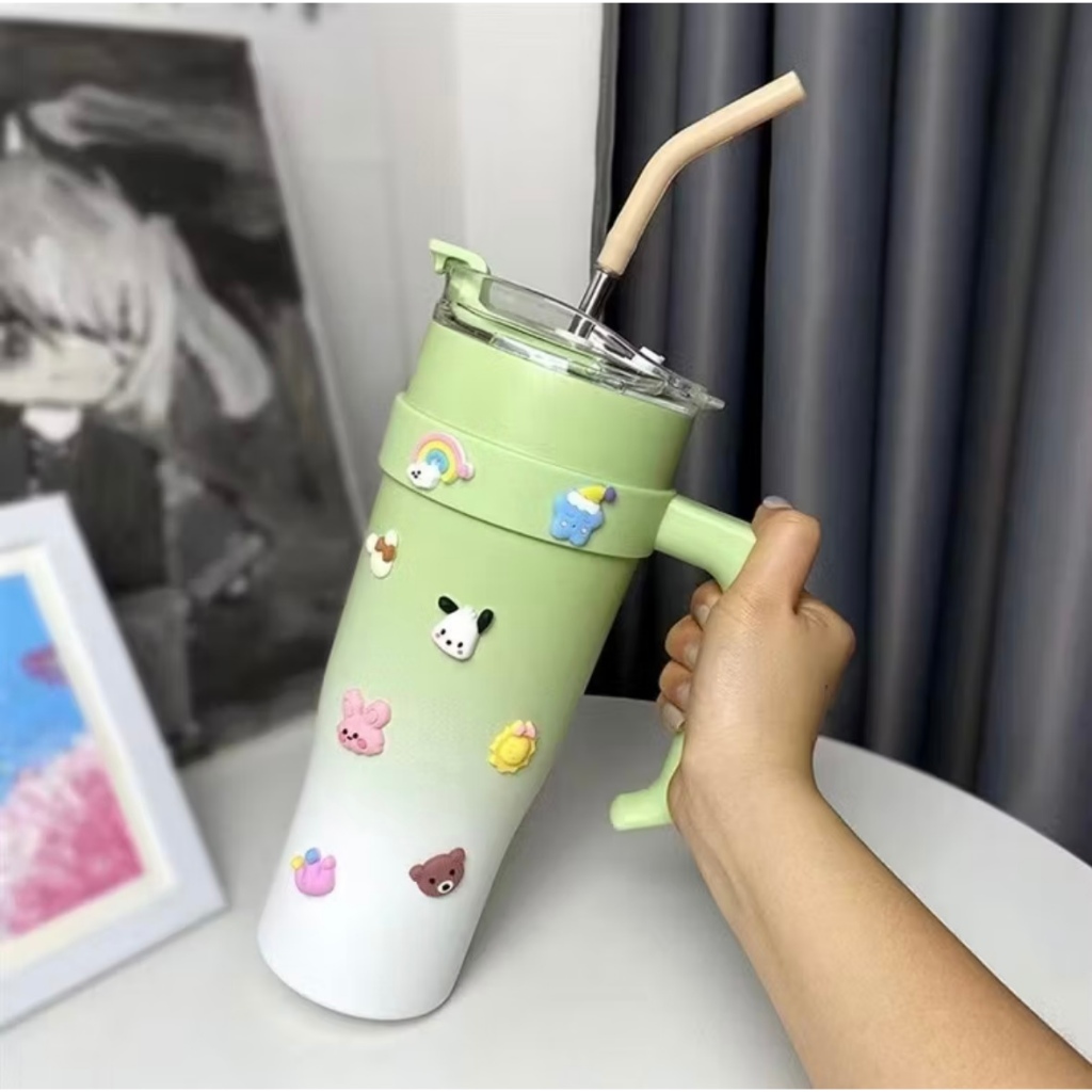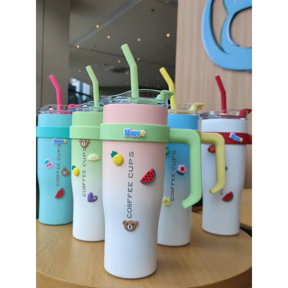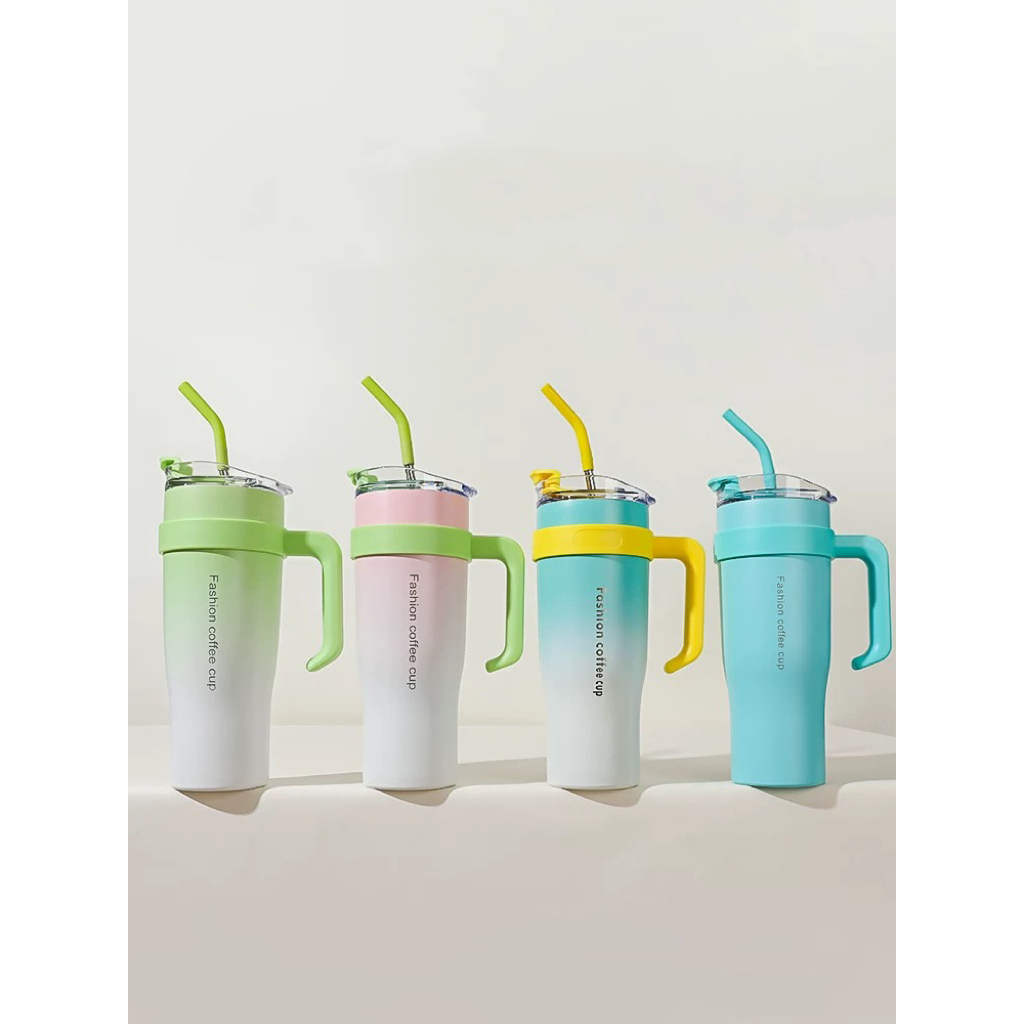 Copo Térmico Dupla Camada Aço Inox Grande Para Bebida Gelado Com Canudo e Tampa 1200 ML