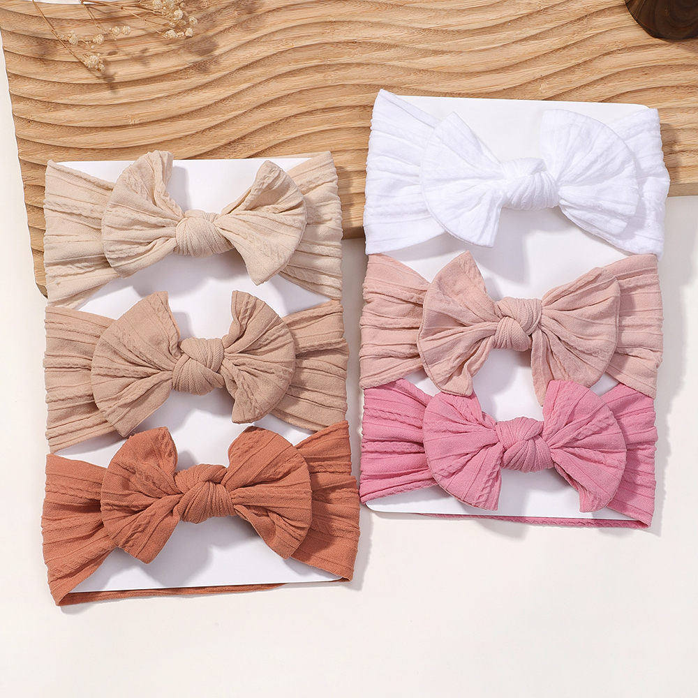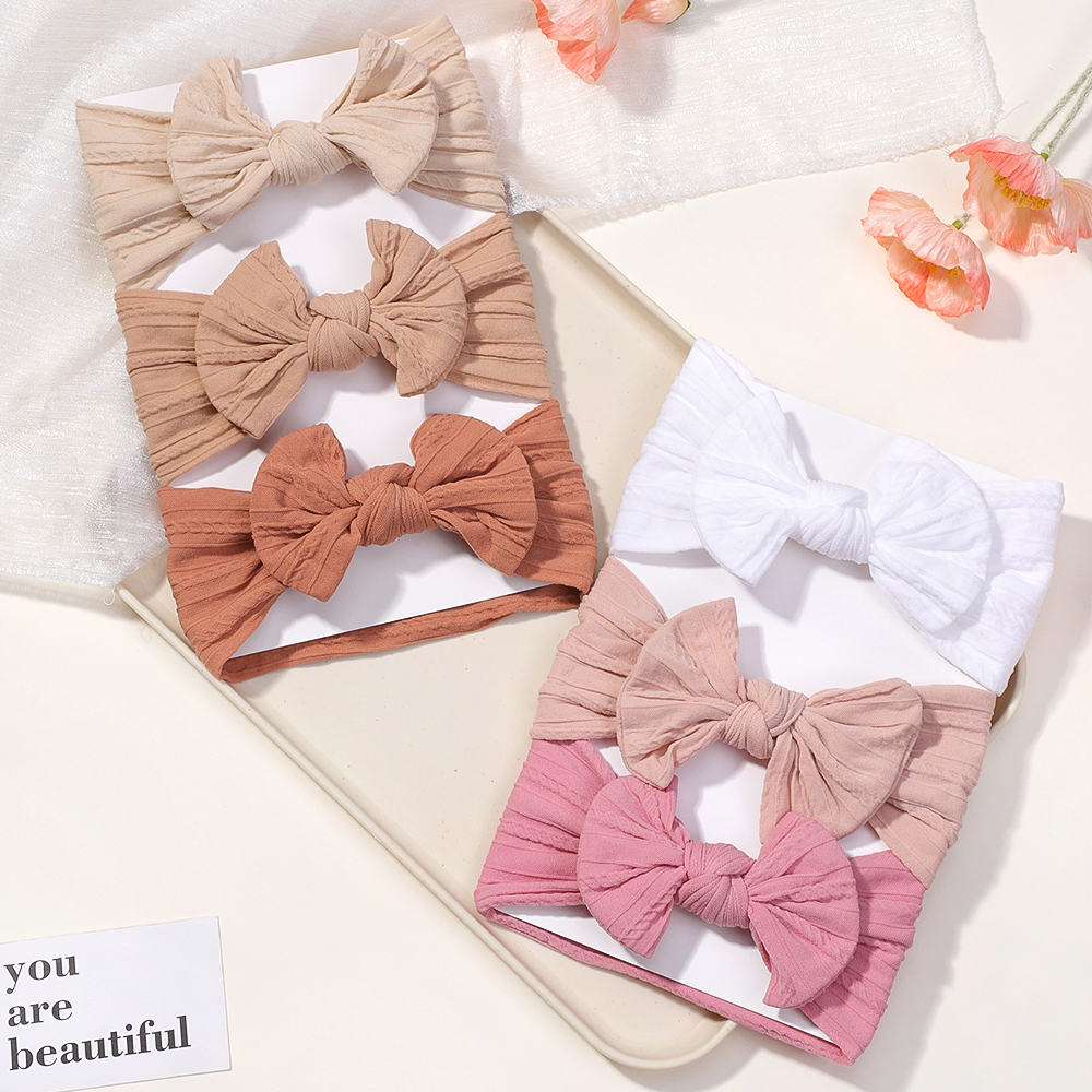 Cor Sólida 3 Pçs/set Bebê Bandana Arco Crianças Faixa De Cabelo Elástico Náilon Recém-Nascido Headbands Macio Turbante H