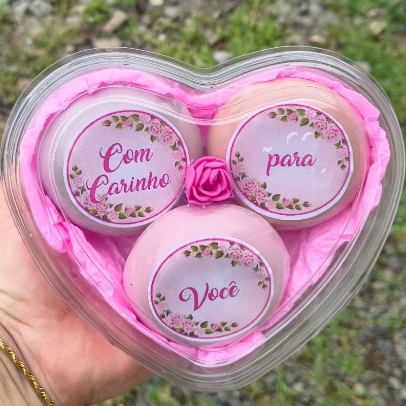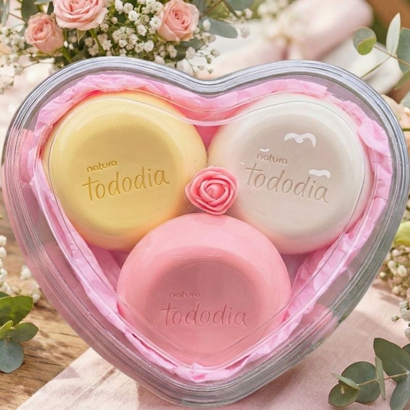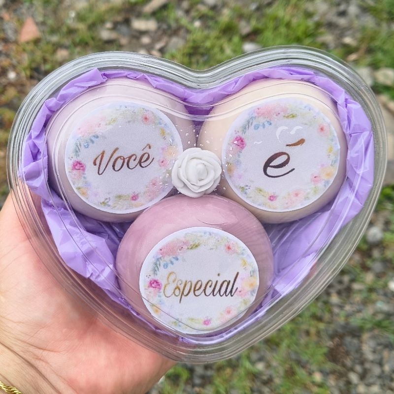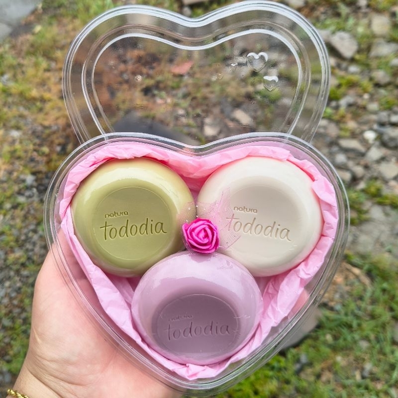 Coração Personalizado com 3 Sabonetes Natura – Lembrancinha Perfeita para Presentear!