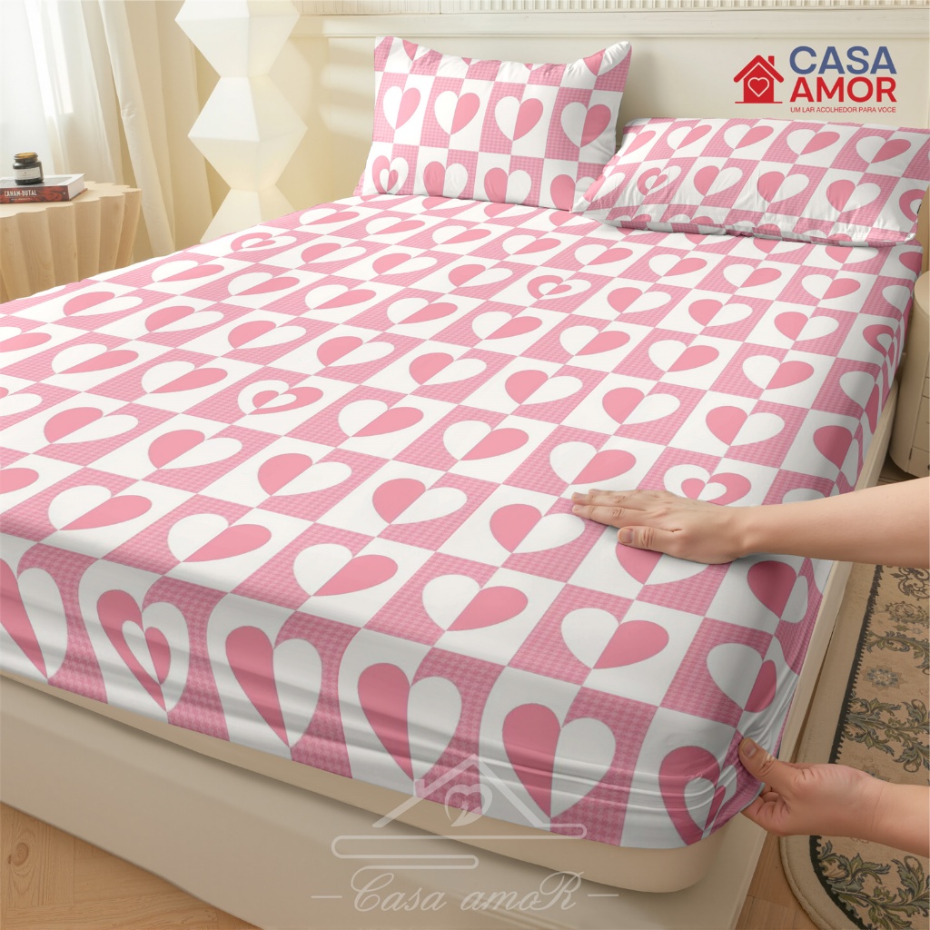 Corações Jogo De Lençol 03 Peças SOLTEIRO/ CASAL /QUEEN Percal Estampado Com elástico não desbota