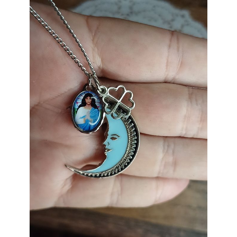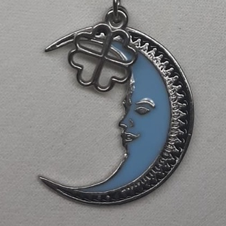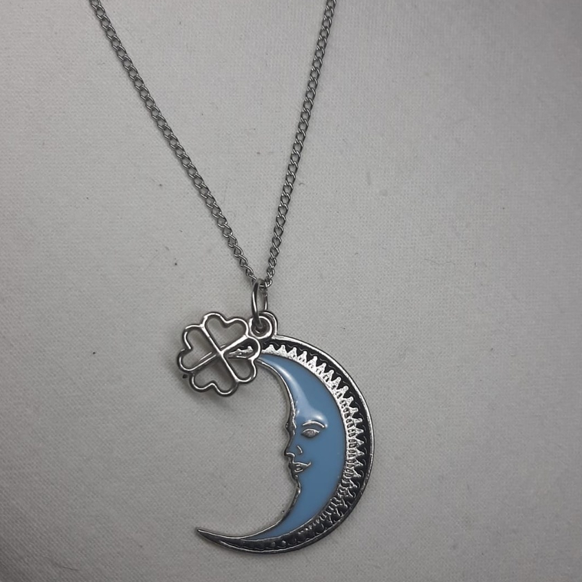 Cordão com pingente Lua Cigana da Sorte - Corrente em inox com pingente Lua cigana Santa Sara e trevo de quatro folhas