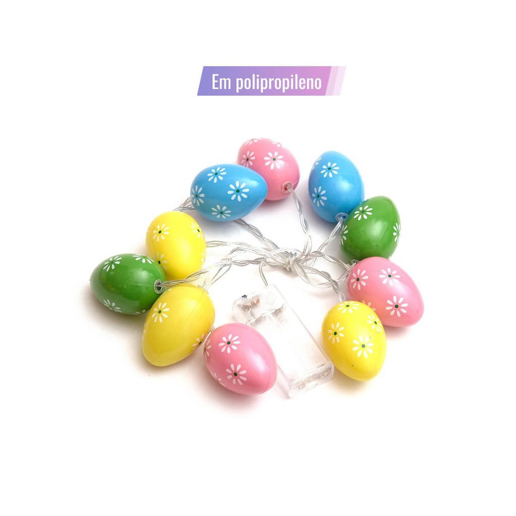 Cordão de Luzes Coloridas Ovos de Páscoa - 10 Lâmpadas - 2M