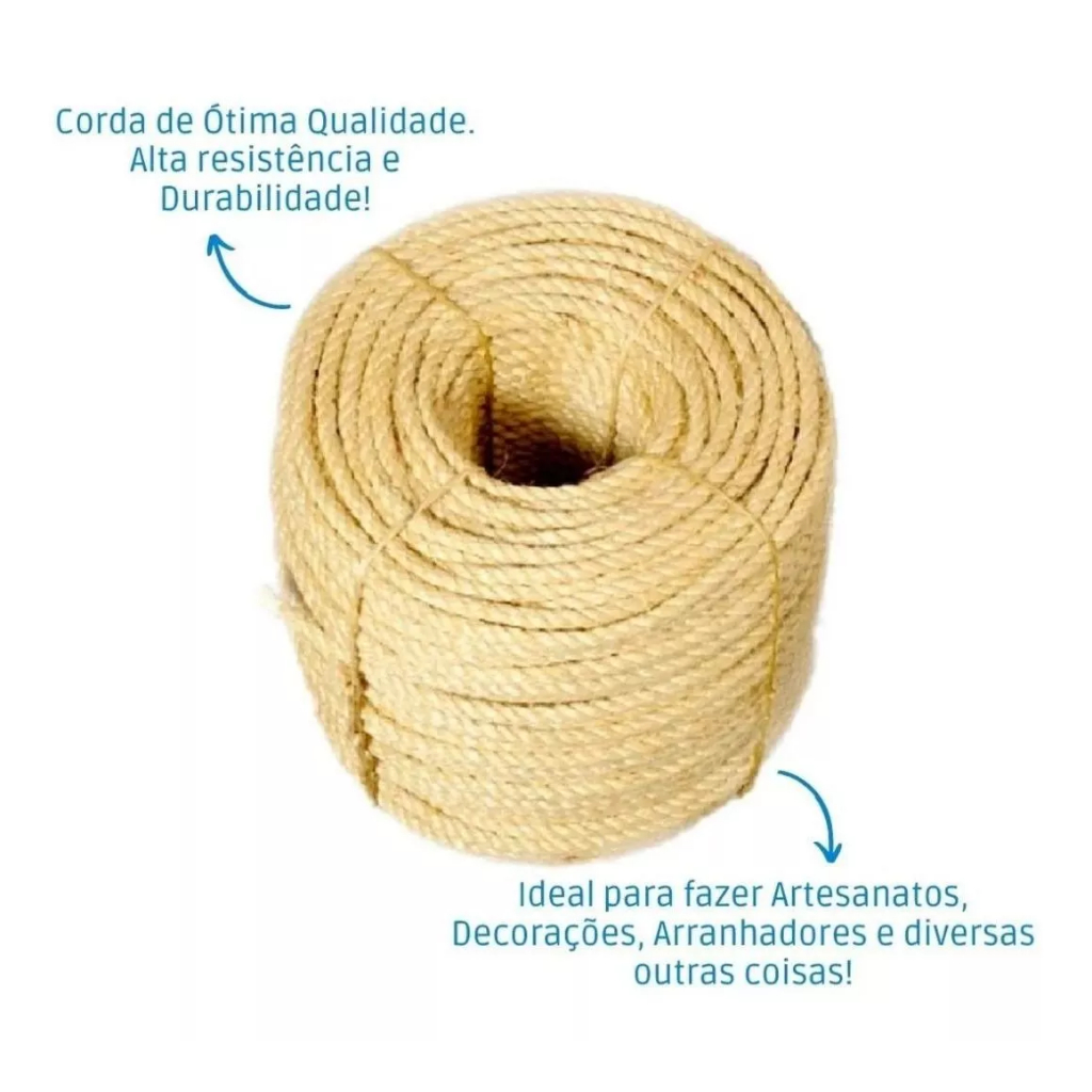 Corda Sisal Natural Resistente Acabamento Fino 10mm 5 Mts