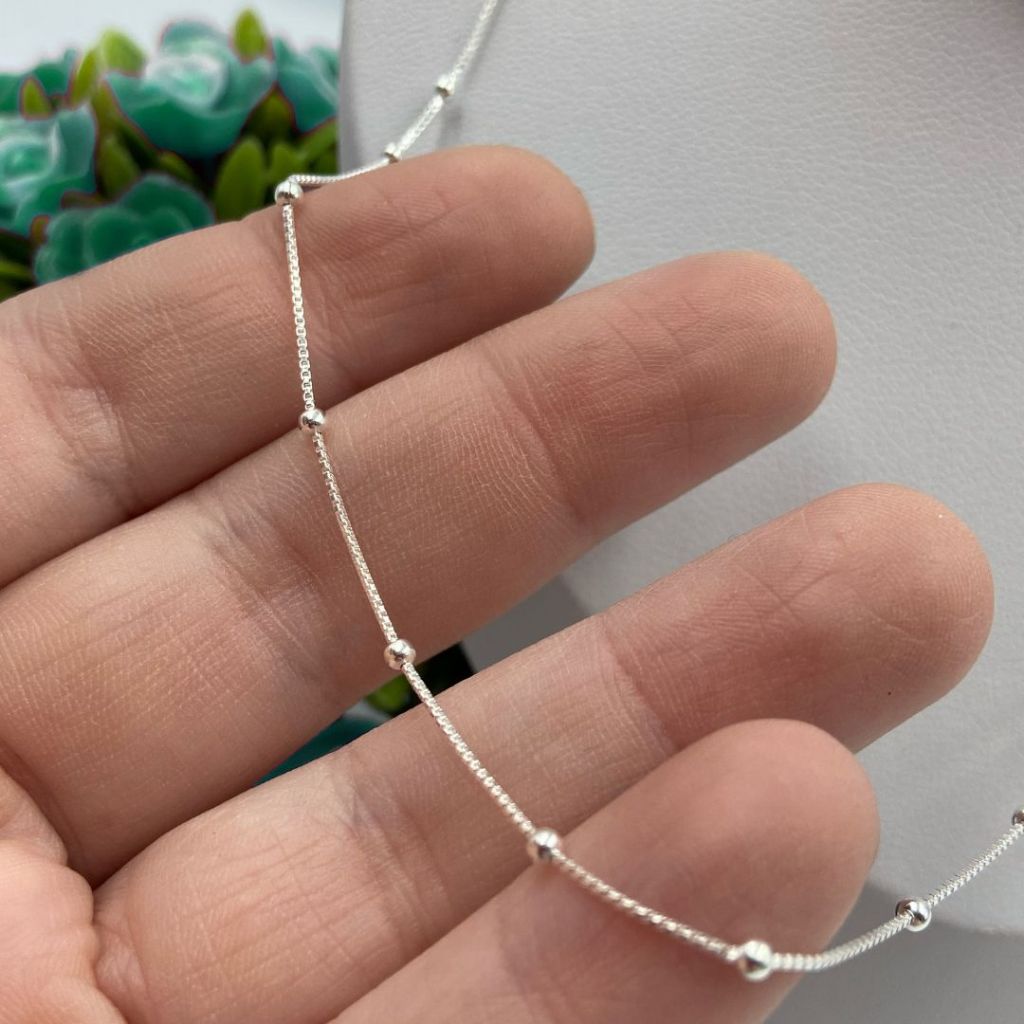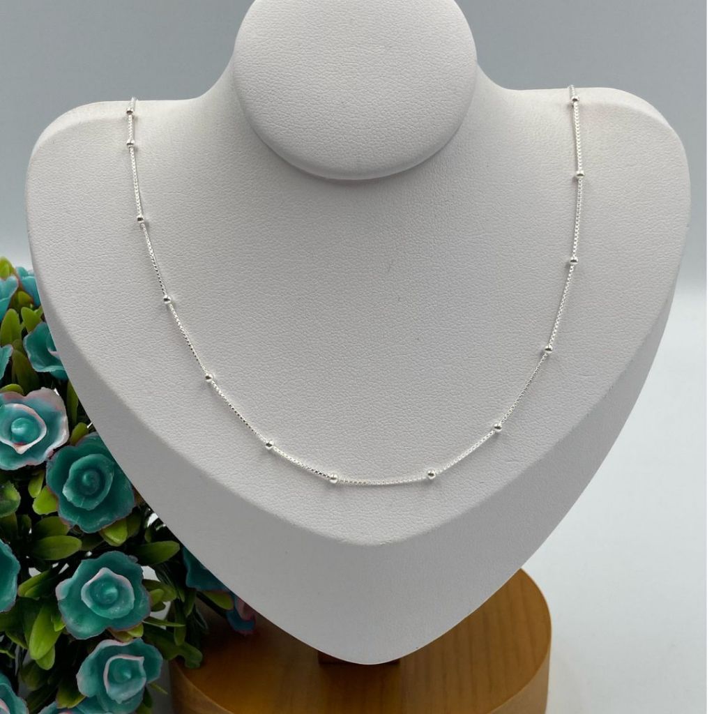 Corrente Colar Feminina de prata 925 Veneziana com Bolinhas