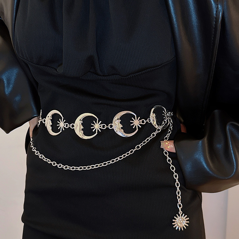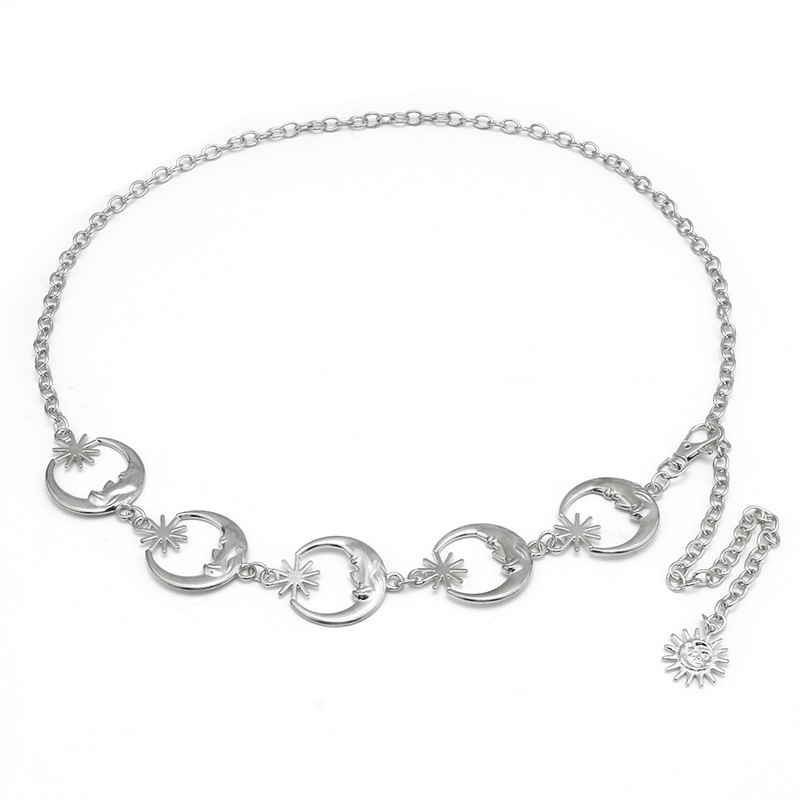 Corrente De Cintura Ajustável Gravada Com Lua Retrô Para Mulheres Festas De Fim De Semana E Praia No Escritório