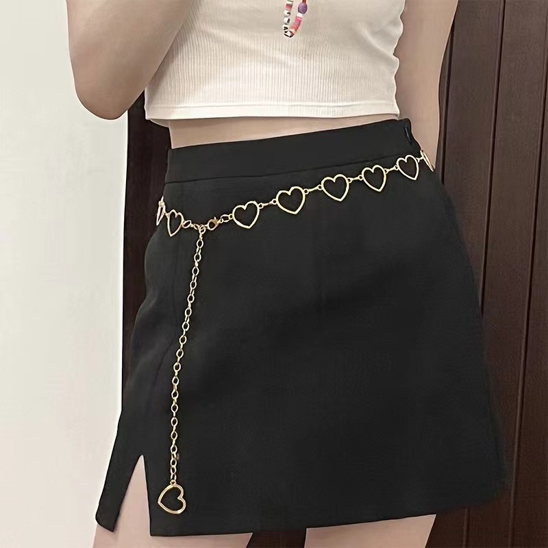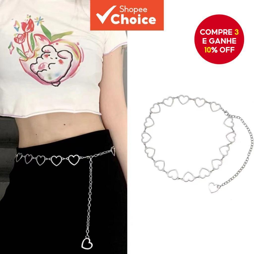 Corrente De Cintura De Coração Oco Ajustável Links De Metal Joias Corporais Para Festa Feminina