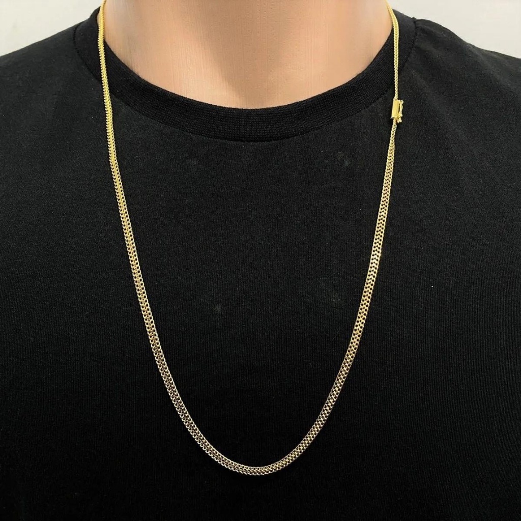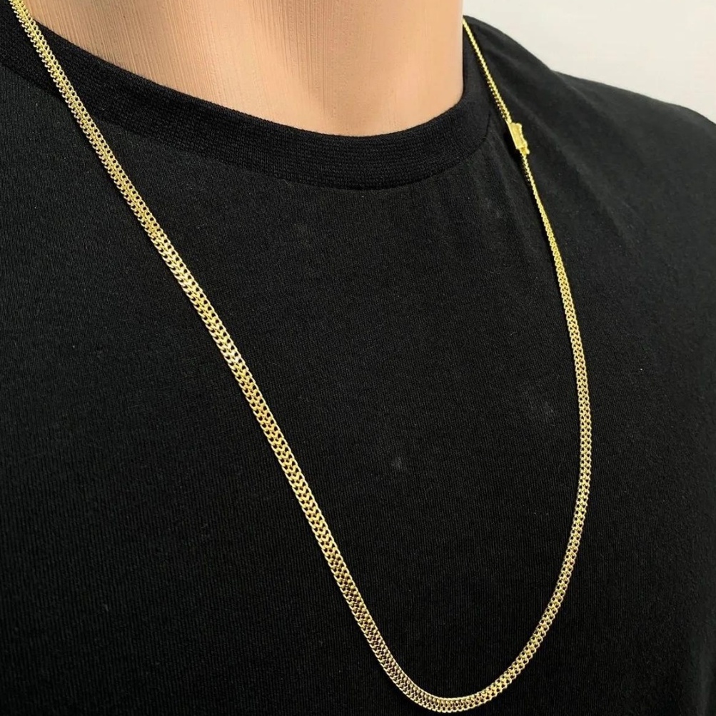Corrente Masculina 3,3mm 70cm Banho de Ouro 24k Corrente Grumet Union Cordão Masculino Pitbull