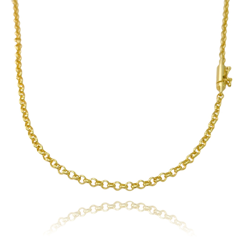 Corrente Masculina 3mm 70cm 12,7g Fecho Canhão Banho de Ouro 24k Corrente Elo Português Corrente Masculina Banhada Cordão Masculino