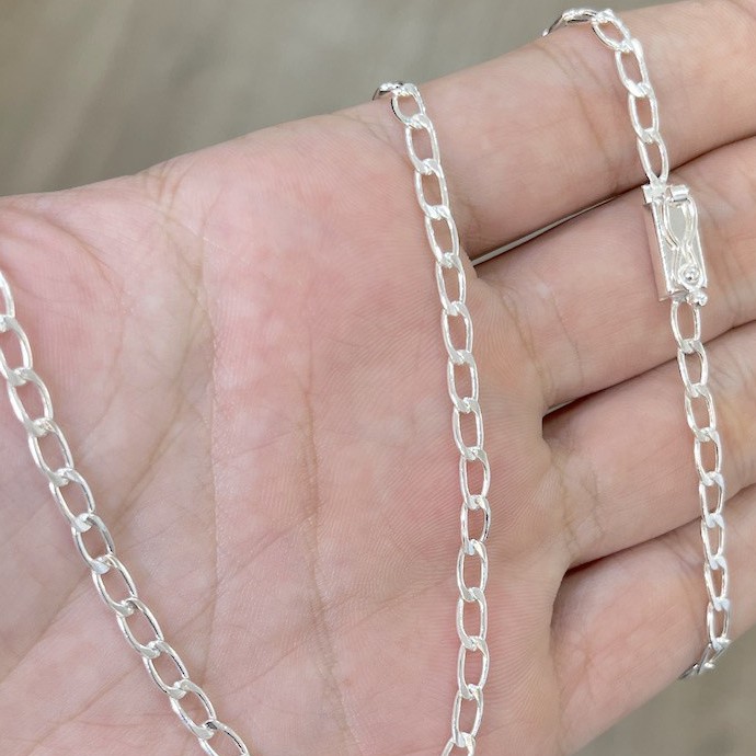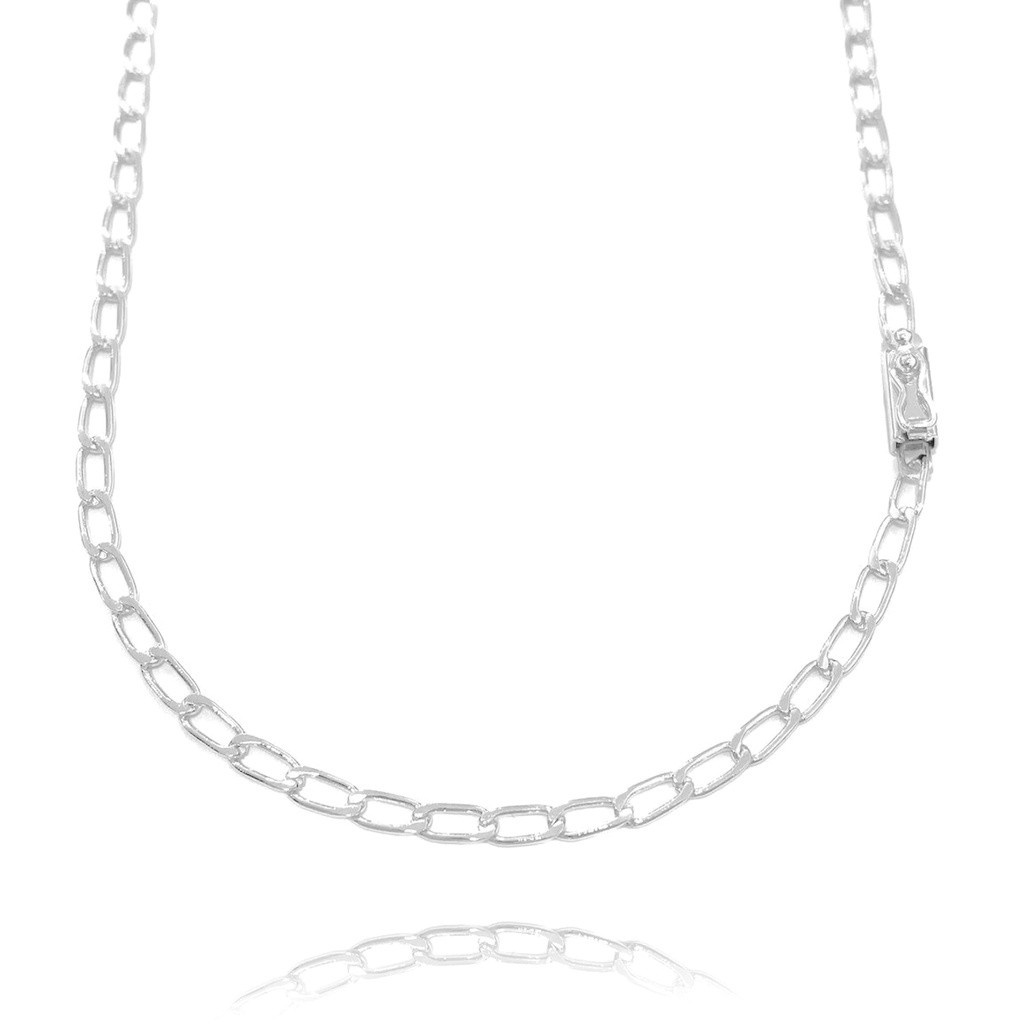 Corrente Masculina Grumet Aberta 3,5mm 70cm Banhada a Prata 925 Cordão Prata