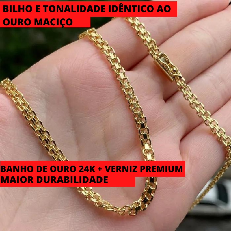 Corrente Masculina Ouro 24k Cadeado Duplo Banhado 60cm